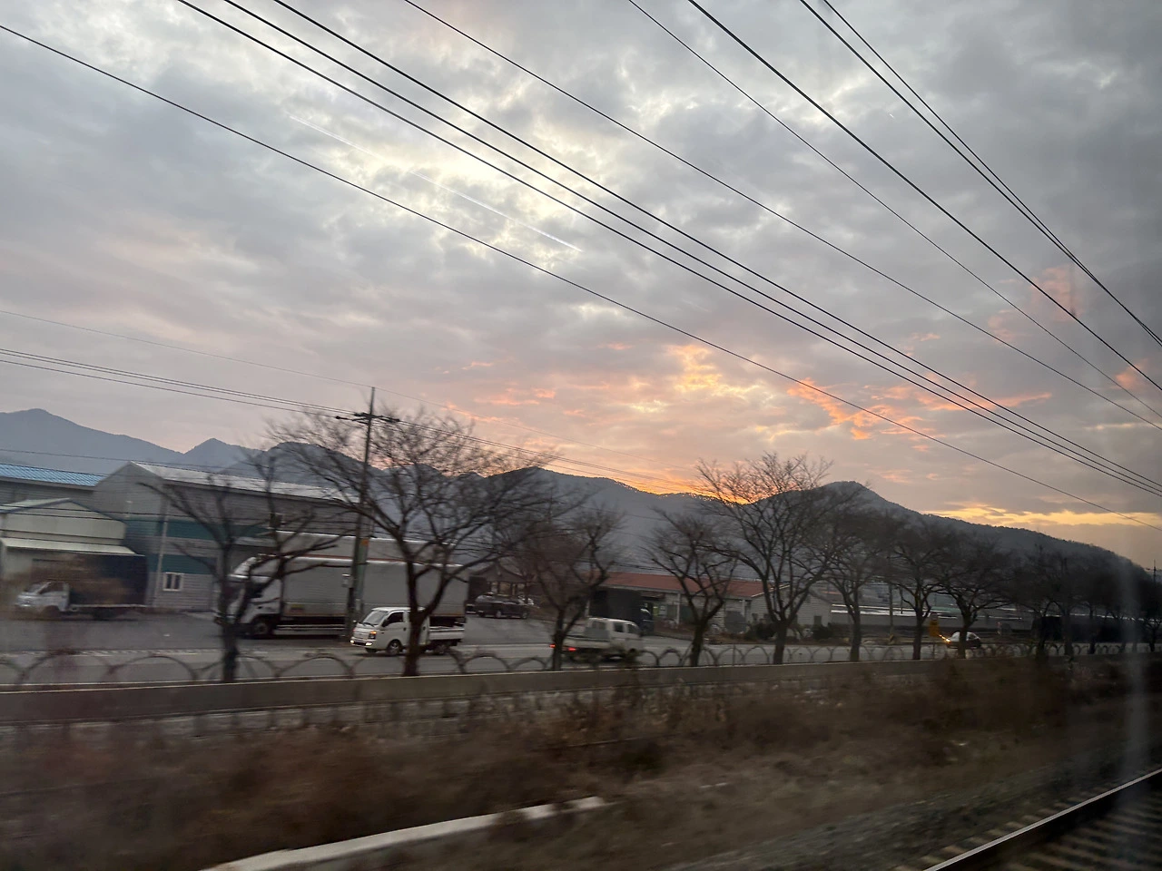 기차에서 누리는 일출… 그걸 기대하며 이른 아침 동트기 전 움직였는데 비소식에 구름이 내려앉은 하늘은 해가 떴음에도 불구하고 좀처럼 환한 얼굴을 보여주지 않았지만 그래도 간간이 보이는 빛줄기로 마음을 토닥이며 그 풍경 또한 누렸다.