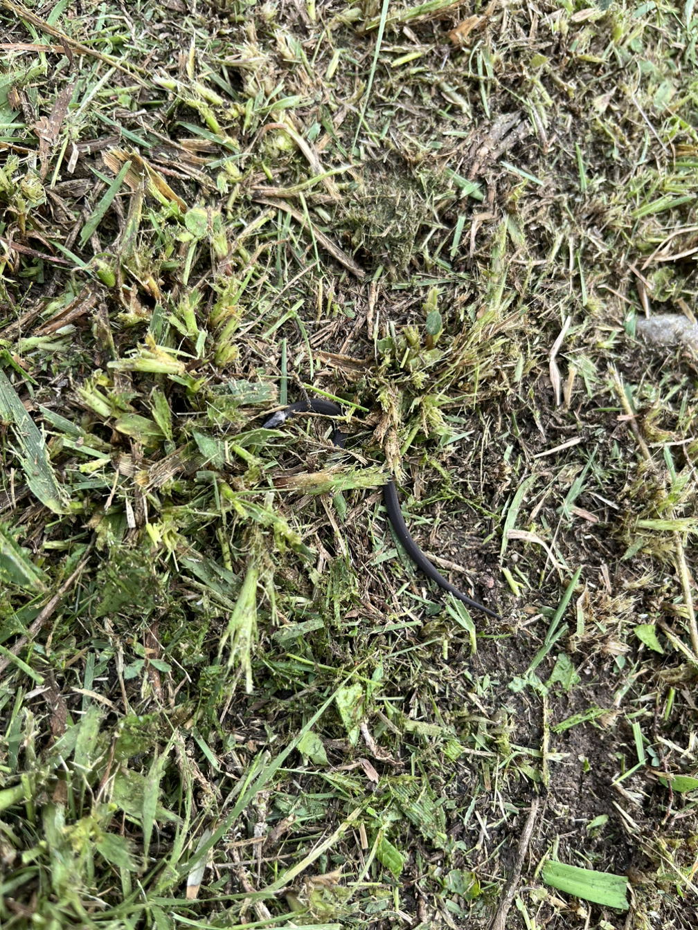 그런 잡초밭을 깎던 중 무언가가 움직이길래 지렁이인가 보다 했다. 그래서 치우려고 다가가니 움직임이 다르다. 그리고 머리모양도 무늬도 색도.