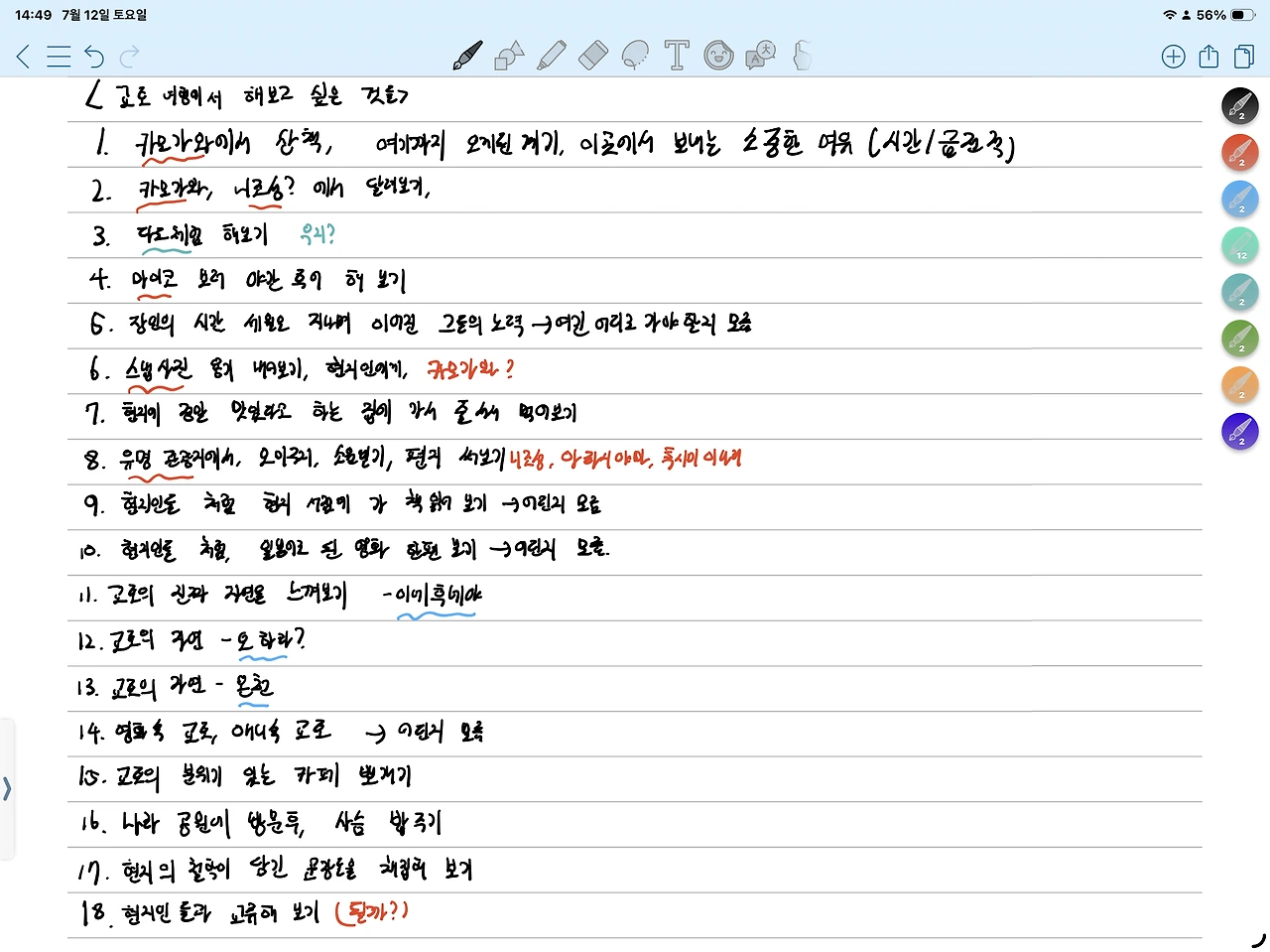그래서 오늘, 조용히 노트를 꺼내어 이 여행에서 해보고 싶은 것들을 적어보기로 했다.