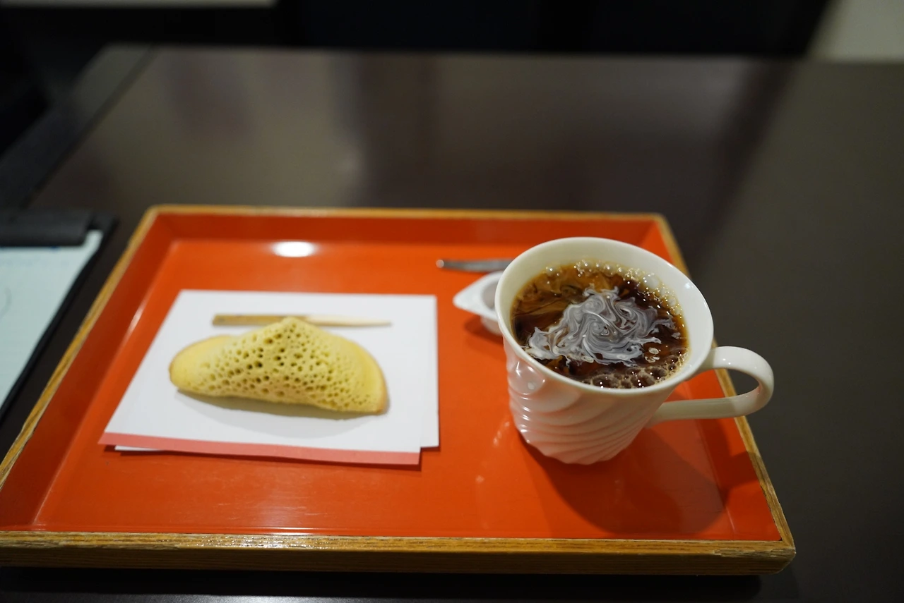 사실 나는 커피만 주문하려 했지만, 점원이 권한 지역 명물 ‘무라스지메 세트’를 시켰다. 커피는 서울에서 마시던 것과 다른, 달콤하면서도 쌉싸래한 맛이었다. 함께 나온 무라스지메는 겉은 카스타드 과자 같고, 속은 팥이 가득했다. 솔직히 ‘명물’이라 하기엔 아쉬웠지만 맛은 충분히 괜찮았다.