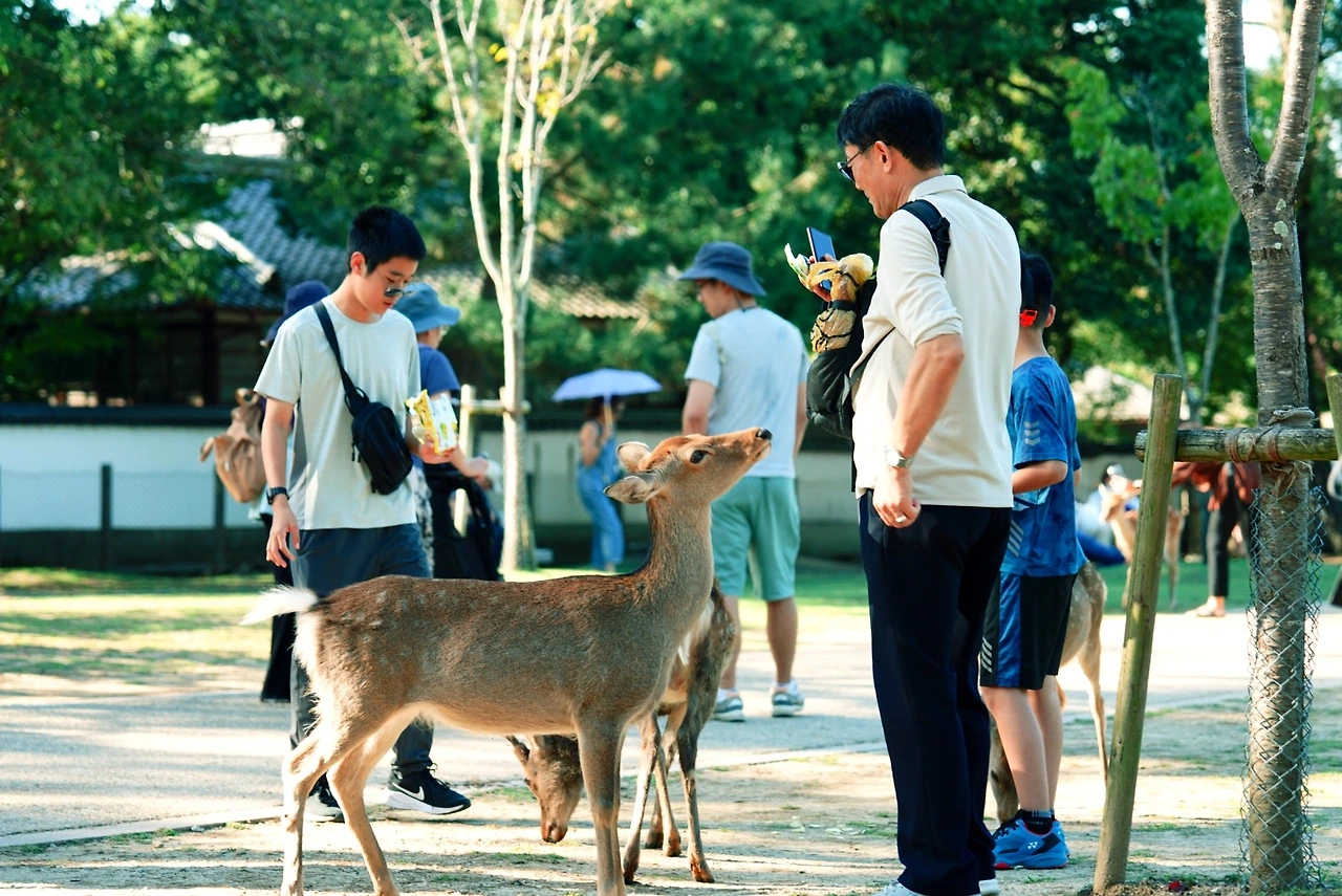 하지만 한편으로는, 사슴들 사이에도 질서와 서열이 있었다. 힘의 논리로 영역을 주장하고, 뿔을 맞대며 싸우는 모습이 곳곳에서 보였다. 인간 사회와 다르지 않았다. 한정된 자원을 나누기 위해 경쟁하고, 그 안에서도 각자의 선을 지키며 살아가는 존재들. 겉으론 평화로워 보여도 그 안에는 치열한 조화의 질서가 있었다. 그러한 생각을 하며 나는 다시 교토행 열차에 몸을 맡겼다.