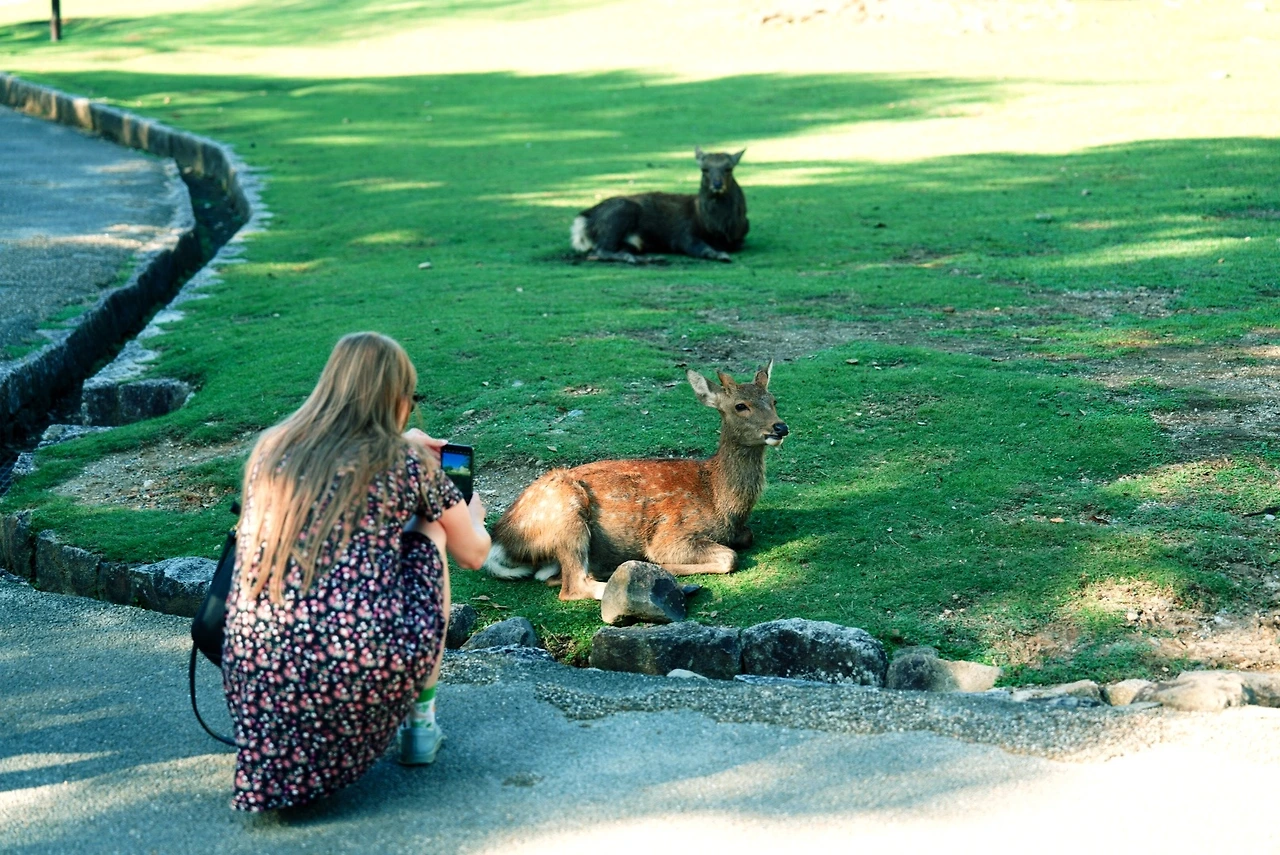 사람들은 평화로웠고, 사슴들도 여전히 사람들의 손에서 먹이를 받으며 고개를 숙였다. 그 모습이 참 사랑스러웠다. 나는 벤치에 앉아 사람들과 사슴들 사이에서 여유를 만끽했다.