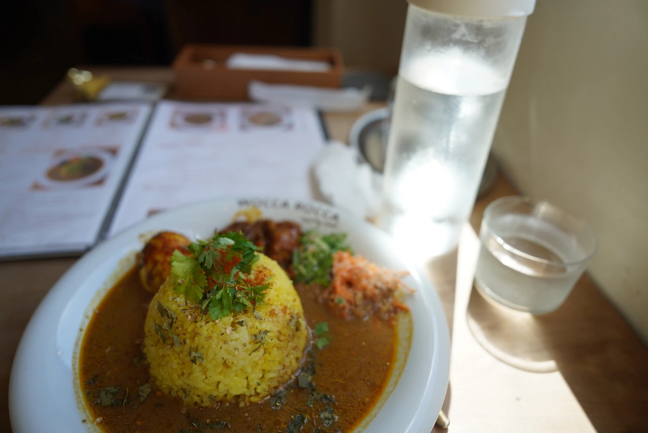 다도체험까지 시간이 남아 근처를 둘러보다가, 우지카와 신사로 가는 길에 예쁜 외관의 카레집을 발견했다. 바깥 메뉴판을 꼼꼼히 보고 들어가 앉았다. 두 남자 사장님이 운영하는 작은 가게였고, 영어로 친절히 주문을 도와주었다. 카레 한 그릇을 시켜 허겁지겁 먹었다.