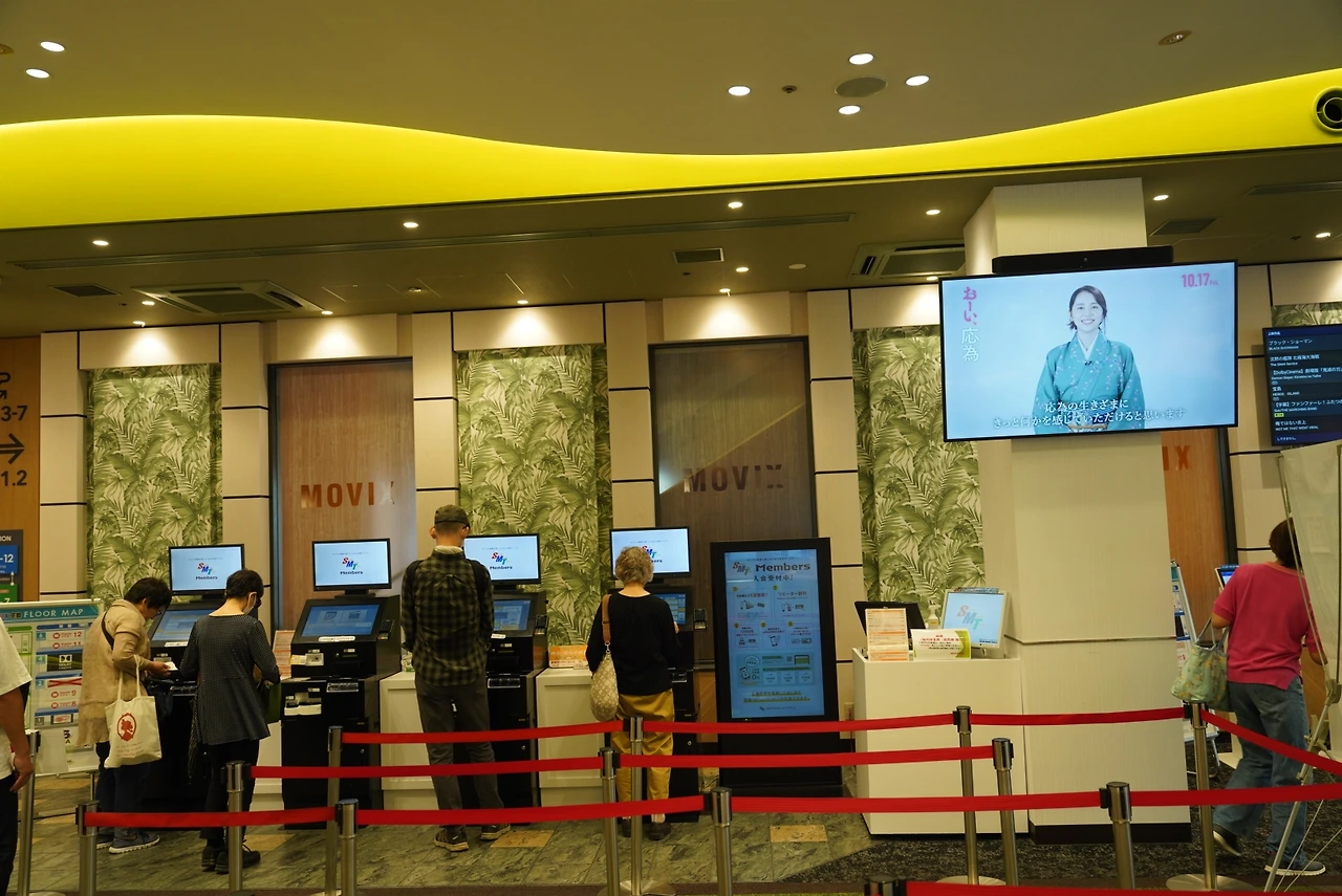 차이점이 있다면, 일본은 영화 편성표를 손으로 볼 수 있도록 비치해둔다는 점이었다. 주말과 다음 주 상영작이 나란히 적혀 있었다. 하지만 아쉽게도, 보고 싶던 ‘도쿄 택시(키무라 타쿠야 주연)’는 아직 개봉 전이었다. 결국 한국에서 개봉했던 영화 ‘말할 수 없는 비밀’을 보기로 했다. 자막은 일본어였다. 음성은 한국어 그대로.