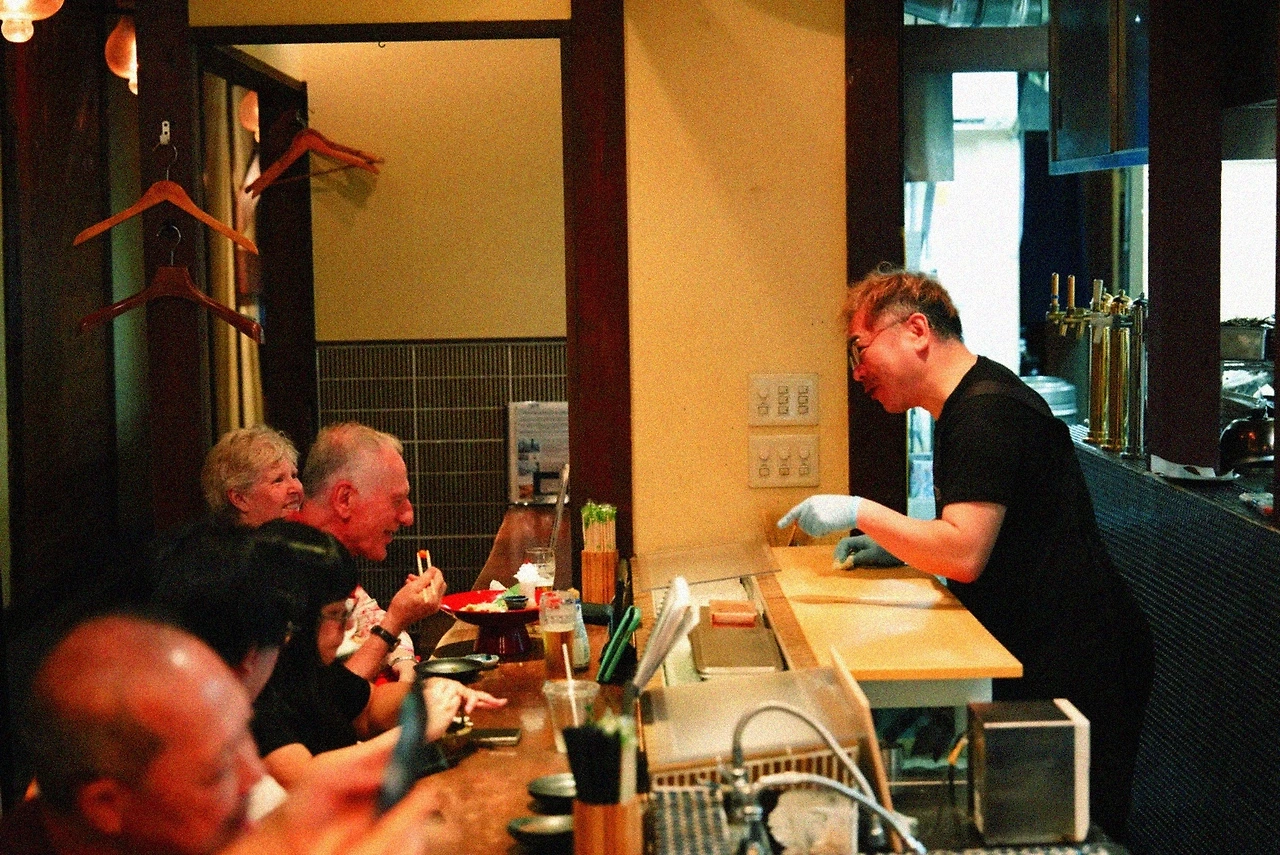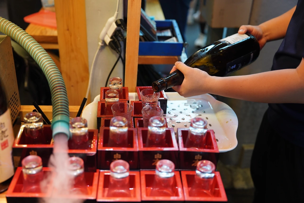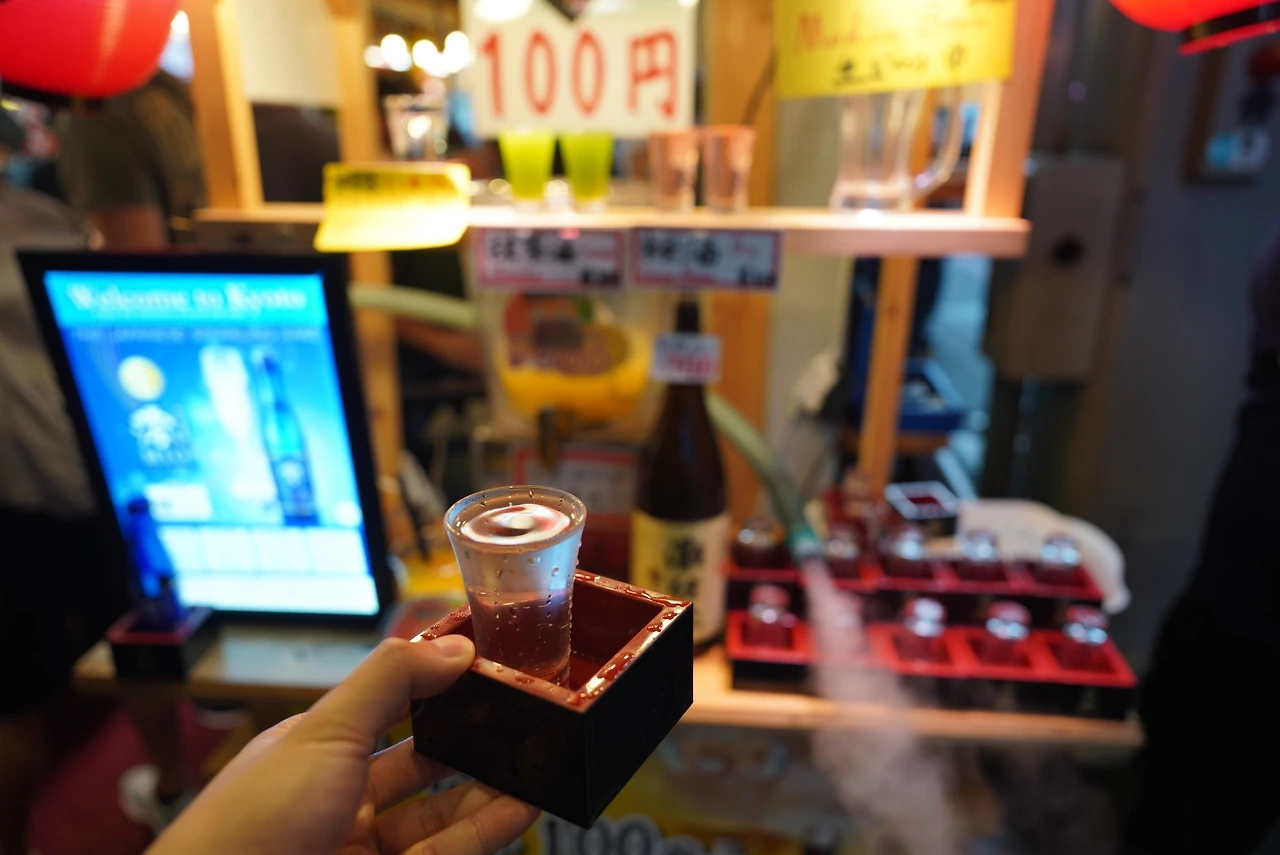 100엔짜리 동전을 건네자, 마스터가 바로 한 잔을 따라줬다. 차갑고 맑은 사케가 입안에서 퍼졌다. 옆의 외국인들도 나를 보며 같은 미소를 지었다. 결국 한 잔 더. 두 번째 잔은 덜 감동적이었지만, 여전히 훌륭했다.
