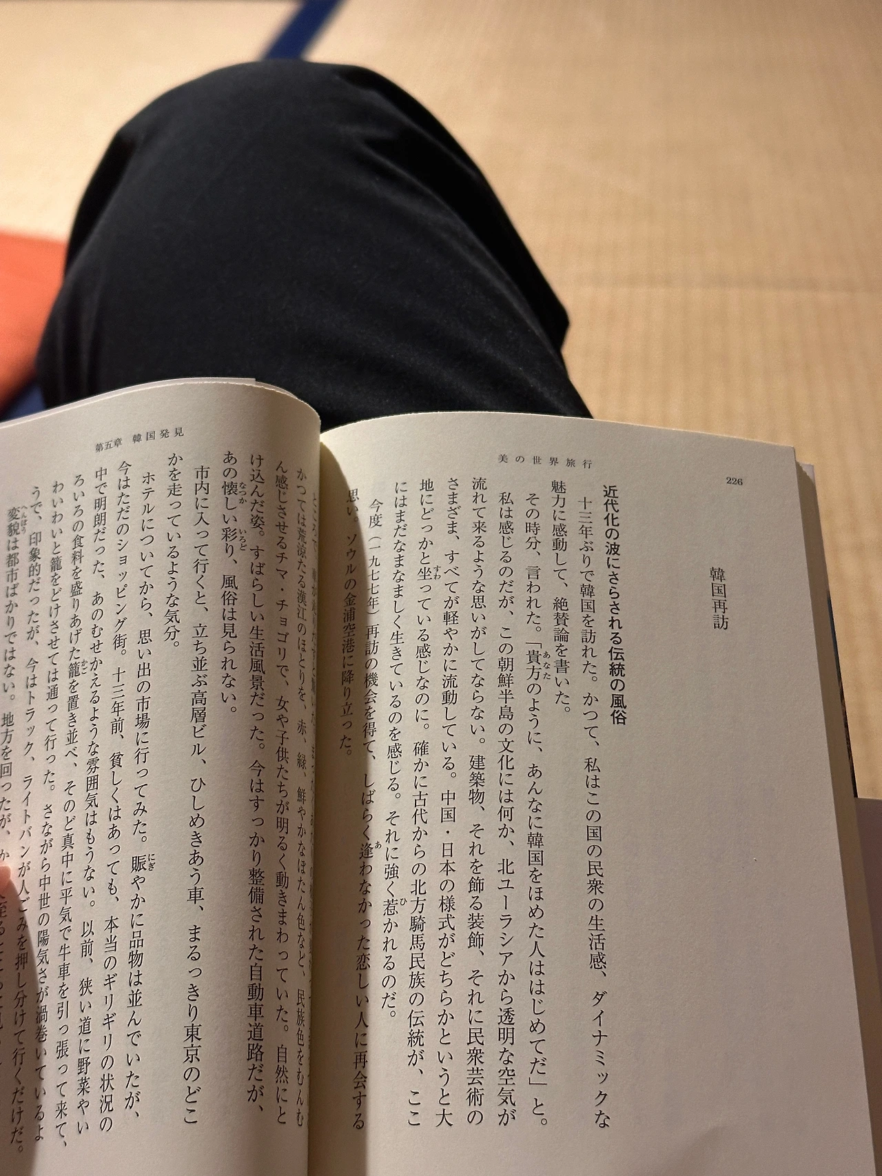 마지막 밤, 숙소 공용 서가에서 우연히 발견한 『아름다운 세계 여행』이라는 책을 펼쳤다. 사실 세계 여행이라는 책 답게 많은 나라들에 대한 여행기가 있었으나, 그중 내가 보기 편한 ‘한국편’을 읽으며, 낯선 이 교토라는 도시에서의 여유와 낭만을 조금 더 만끽했다.