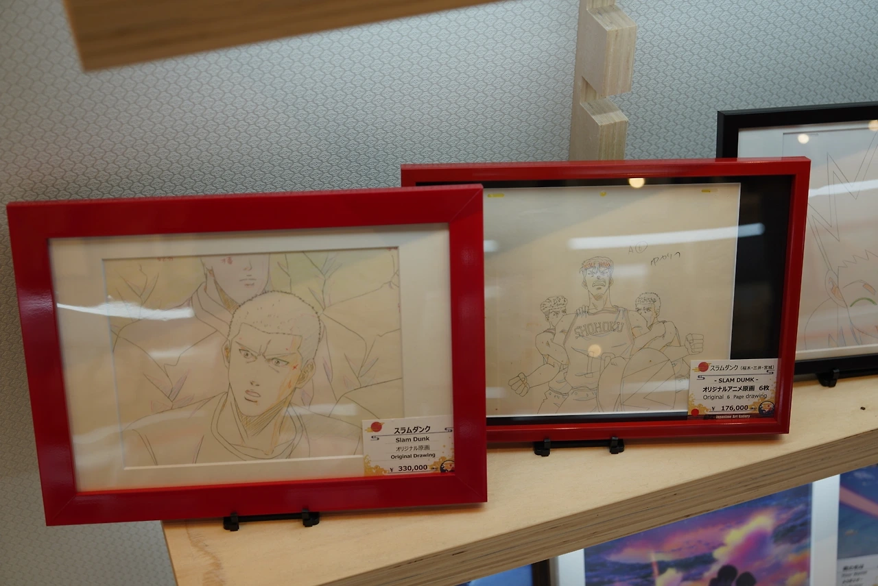 테라마치 상점가 끝자락에는 애니메이션 작가들의 한정판 그림을 판매하는 곳도 있었다. 슬램덩크, 드래곤볼, 지브리까지. 사진 촬영도 자유로워 부담 없이 즐길 수 있었다.