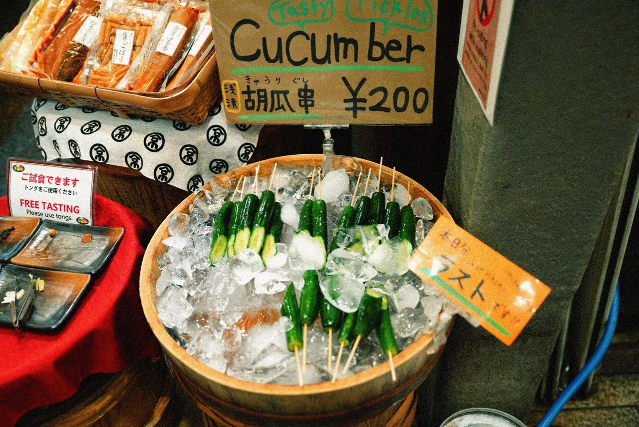 테라마치가 주로 일본 잡화 위주라면, 니시키는 식자재의 천국이었다. 사람들로 발 디딜 틈이 없었다. 현지 아주머니들, 젊은 여행객들, 그리고 나 같은 혼자 여행자들이 섞여 있었다.