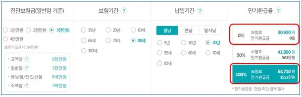 그러면 온라인 생명보험에서 판매하는 비갱신형 암 보험을 통해 만기 환급형과 순수 보장형을 직접 비교해 보자. 온라인 보험 중에는 내가 원하는 방식으로 직접 설계하여 보험료를 비교할 수 있는 보험회사가 많다.