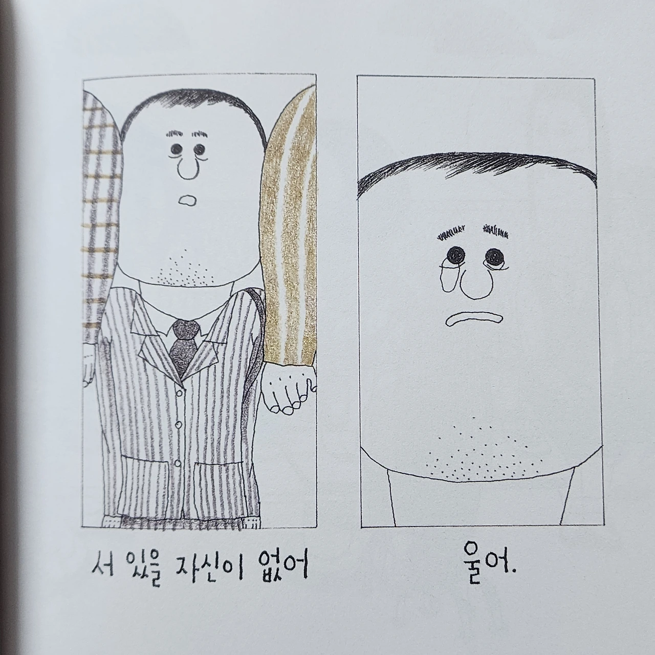 이 쪽에서 밀고 저쪽에서 미는데 서 있을 자신이 없어서 우는 아빠
