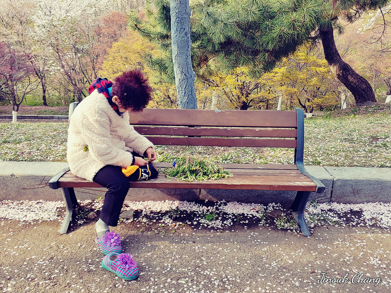 이리저리 뒤척이다 까르르 달아난다. 사람들 꽃비 맞으며 희희낙락인데 벤치에 홀로 앉아