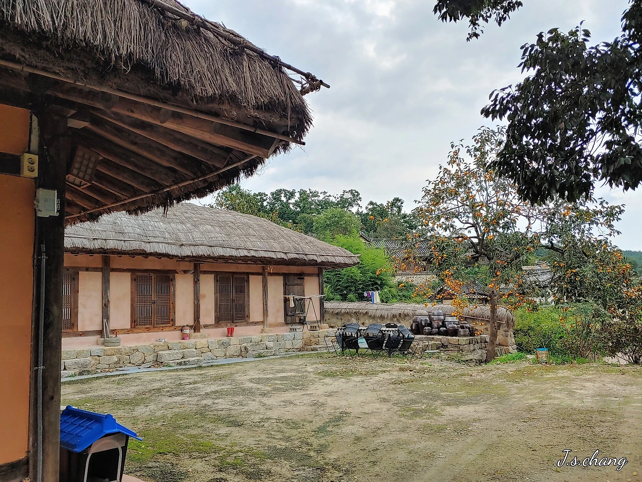 초가집 마당에