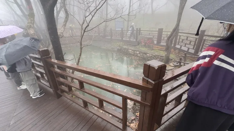 실망한 채로 오녀산성의 다른 곳을 둘러보기로 했다. 혼강은 보이지 않았지만 바로 옆에 큰 절벽은 제대로 보였다. 내 걷어찬 돌이 이 아래로 떨어졌는데 돌이 떨어진 소리가 들리지 않아, 여기서 떨어지면 오체분시가 디폴트일 거 같아 겁을 제대로 먹었다. 여전히 비가 내리는 하늘을 원망하던 차 누군가의 말이 내 귀에 꽂혔다.