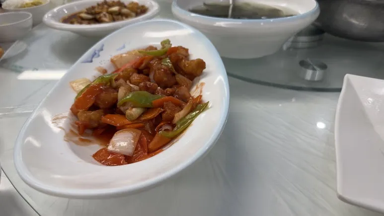 오녀산성에서 30분 정도 버스가 달려 식당에 도착했다. 저녁과 크게 다르지 않은 메뉴로 나왔는데 케첩맛이 강한 깐풍기가 내 취향이었다. 여기서 식사를 하면서 일행분들과 대화를 처음으로 제대로 나눴다. 젊은 분이 이런데 와서 신기하다, 어디 살아요 등... 그리고 박사님들께 "우리 역사 최고의 명장이 누구냐"등 재밌는 질문에 답변하는 걸 같이 들으면서 이야기를 나눴다. 그리고 이때 여러 일행분들이 나를 무려 "20살 혹은 고등학생"으로 보셨다.