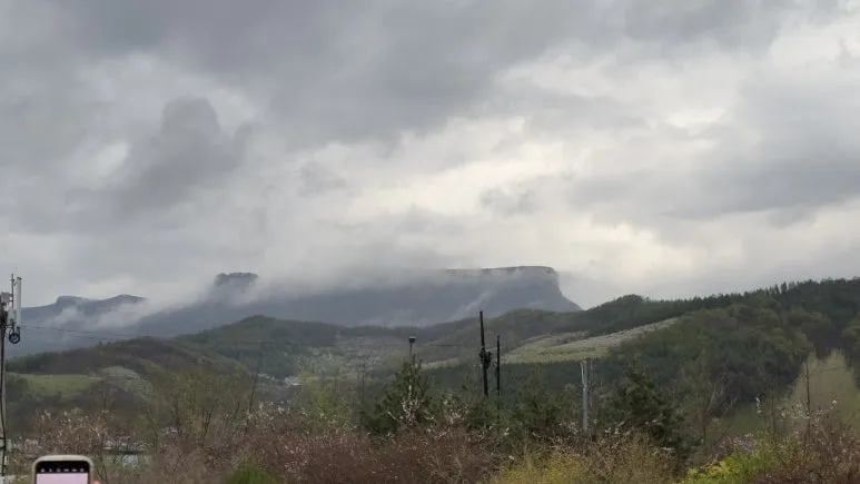 오녀산성이 보이지 않으니 다들 실망한 분위기가 여력 했다. 눈앞에 있어야 할 오녀산성이 보이지 않았으니 당연한 일이었다. 적당히 가려진 게 아닌 먹구름이 산 전체를 집어삼켜 모습이 전혀 보이지 않았다. "운도 지지리 없다"라는 말이 저절로 나왔다.