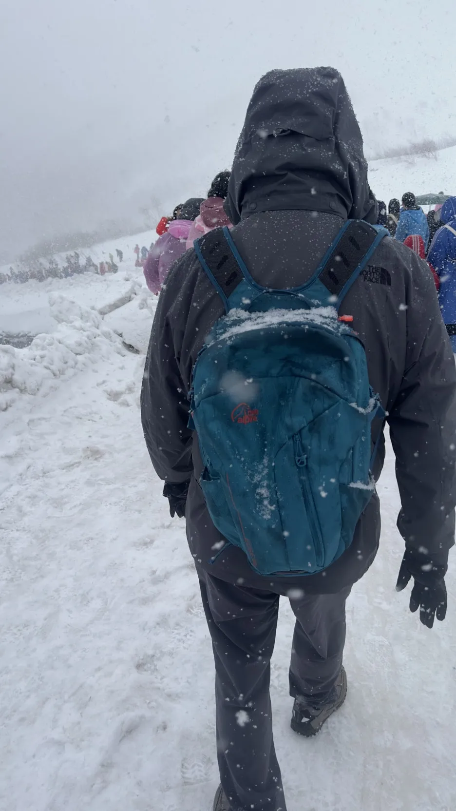 우비를 안입으면 못갈 수준으로 눈이 계속 내린다. 설경이 너무 아름다워 옆에 계신분에게 사진을 찍어달라고 했다.이 분이 사진에 되게 능통하셔서 정말 사진이 내 마음에 들게 나왔다.