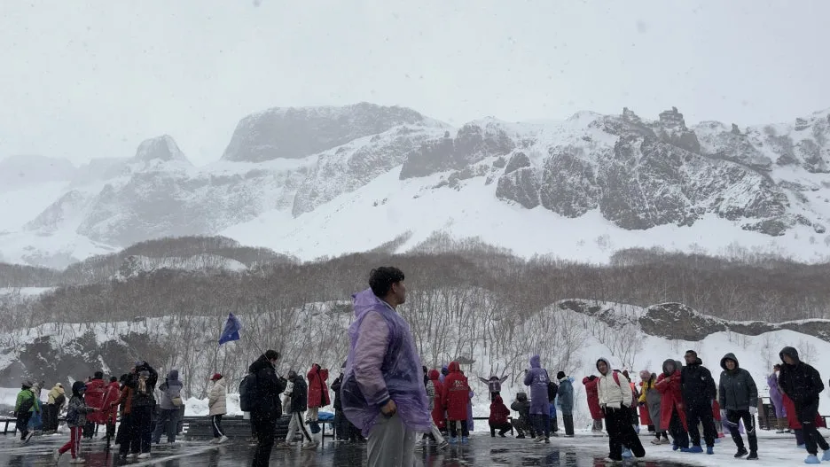 백두산에 눈이 왔다고 합니다...폭설이..그래서 천지를 못본다고 합니다.