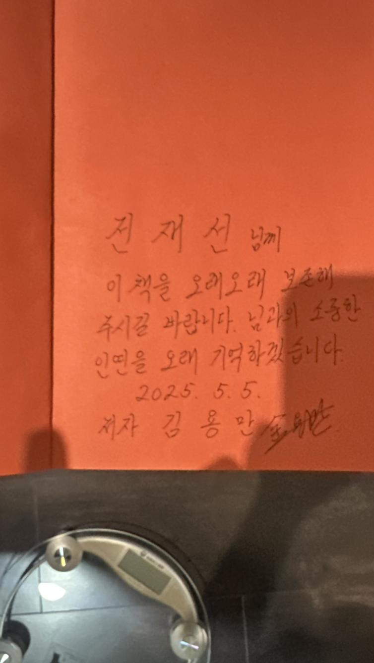 이후 김용만 소장님에게 저서를 들고가 싸인을 받았다.
