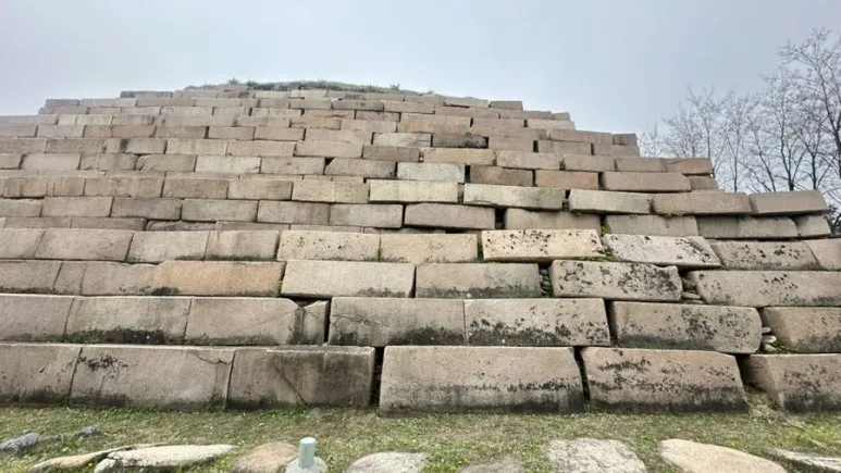장군총 기단석도 이렇게 크다. 태왕릉 기단석보다는 작아도 성인남성의 2배 높이고 이 기단석이 지탱해주는 무덤은 한없이 커보였다. 과연 고구려 적석총의 절정이다! 라고 생각하며 보던 차 뭔가 이상함을 느꼈다.