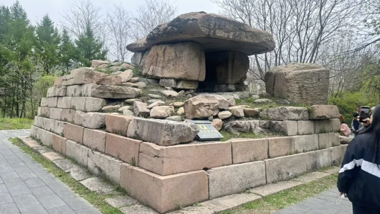 내가 정확히 기악하는게 맞다면 저 곳이 집안박물관에서 본 오회군 5호묘다. 사신도와 수많은 신령과 용, 그리고 천장 가운데에 있는 황룡까지, 그 실물을 직접 보고 싶지만 요즘은 훼손을 막기 위해 볼수 없다. 내 사욕보다는 대의를 따른다는 심정으로 이해했다. 이 곳을 마지막으로 집안에서 고구려 답사를 마무리 하고 식사를 하러 갔다.