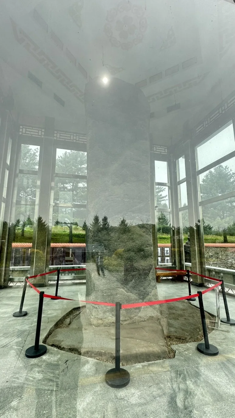 안에서는 사진촬영이 허용되지 않기에 방탄유리에 대고 최대한 가까이 찍었다. 가까이서 광개토태왕비를 본 소감은 "영롱하다"이다 . 1600년이 넘는 세월간 저 거대한 비석은 나를 맞이 하는데 감히 영광스럽다는 감정마저 들었다. 저 추모왕부터 이어온 고구려 왕실의 신화, 광개토태왕의 정복 활동-광개토태왕의 유언과 함께 수묘인 제도까지 전부 기록된 이 비석은 나에게 말을 거는듯했다. 이 순간이 어찌 영롱하지 않다 할수 있을까. 이 날을 위해 지금까지 고구려를 좋아하고 공부해온것일까?