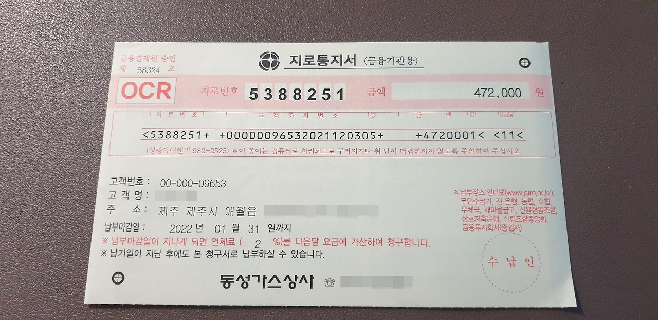 수화기 너머로 들리는 목소리에 슬슬 우리집 난방비 걱정이 되었다. 집에 돌아오자마자 현관에 놓인 가스비 고지서부터 확인하였다.