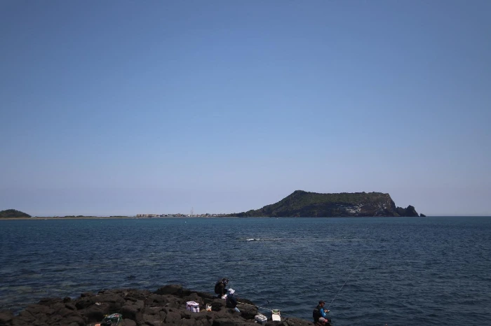 성산일출봉을 앞에 두고 낚시라니...... 이보다 멋진 풍경이 또 있을까? 잠시 넋을 놓고 풍경을 감상한다. 보는 것만으로도 힐링이다. 이미 성산 바다 바위는 낚시꾼들이 점령하고 있었다.