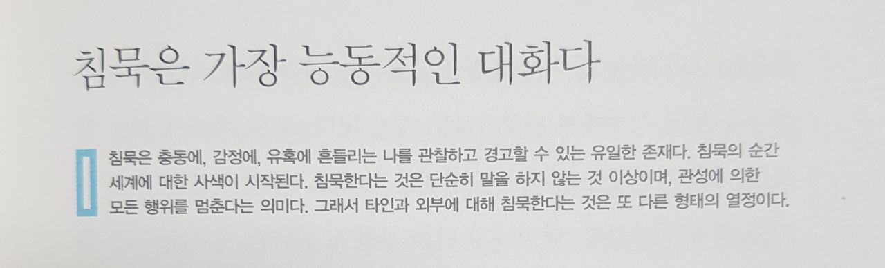 또한 나도 그 불편함을 즐기기로 했다. 나를 불편해 한다는 것은 내가 조심스럽다는 것이고, 날 함부로 대할 수 없다는 것을 의미하기에 나쁘지 않다는 생각을 했다. 나도 그들을 예의있게 대하면 되는 일이다. 이런 생각을 하니 직장에서 사람으로 인해 스트레스를 받거나 힘든 일이 사라졌다.