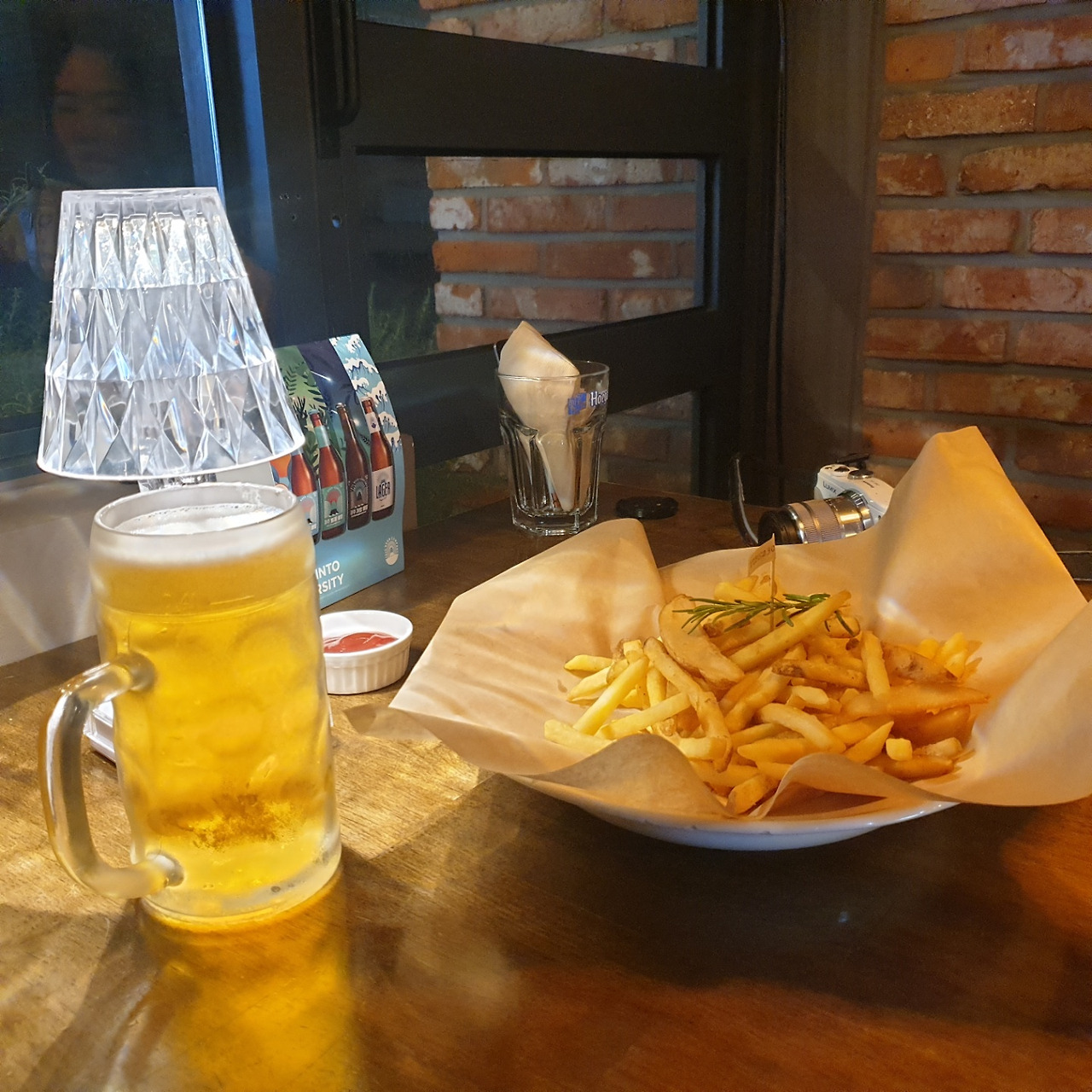 평소에 회를 좋아하지 않는 아들도 너무 맛있다며 계속 입속에 넣는다. 아내와 나는 아이들에게 한 시간의 부부시간을 허락 받고 호텔 밖 분위기 있는 펍에서 단둘이 생맥주를 마신다. 무뚝뚝한 아내도 분위기 있는 펍에서 맥주 한잔을 하니 안 어울리게 다정해진다.
