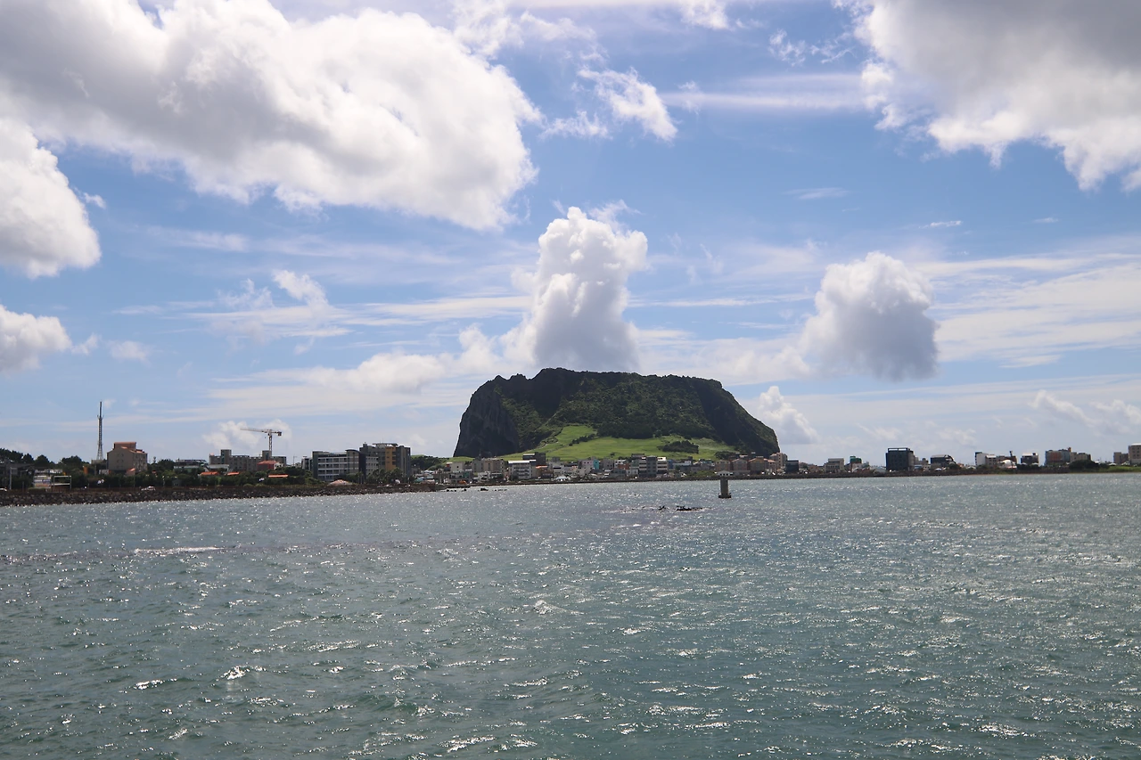 "오늘 날씨 왜 이래? 하늘 봐, 바다 색깔 미쳤어. 역시 성산이 짱이야~~ 너무 예뻐."