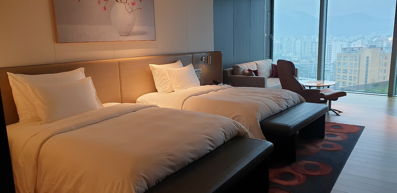 드림타워는 모든 것이 웅장했다. 주차장, 로비, 홀, 수영장, 상점, 엘리베이터, 심지어 사람들이 지나다니는 통로까지 모두 크고 시원시원했다. 시내 한복판 어마어마한 부지에 지어진 빌딩이어서 그런지 모든 공간을 넓고 길게 빼놓았다. 거기에 층고는 높고 공간은 넓은 객실이란...... 마치 "우리는 고객님께 아낌없이 내어 드립니다."라고 말하는 것만 같았다.