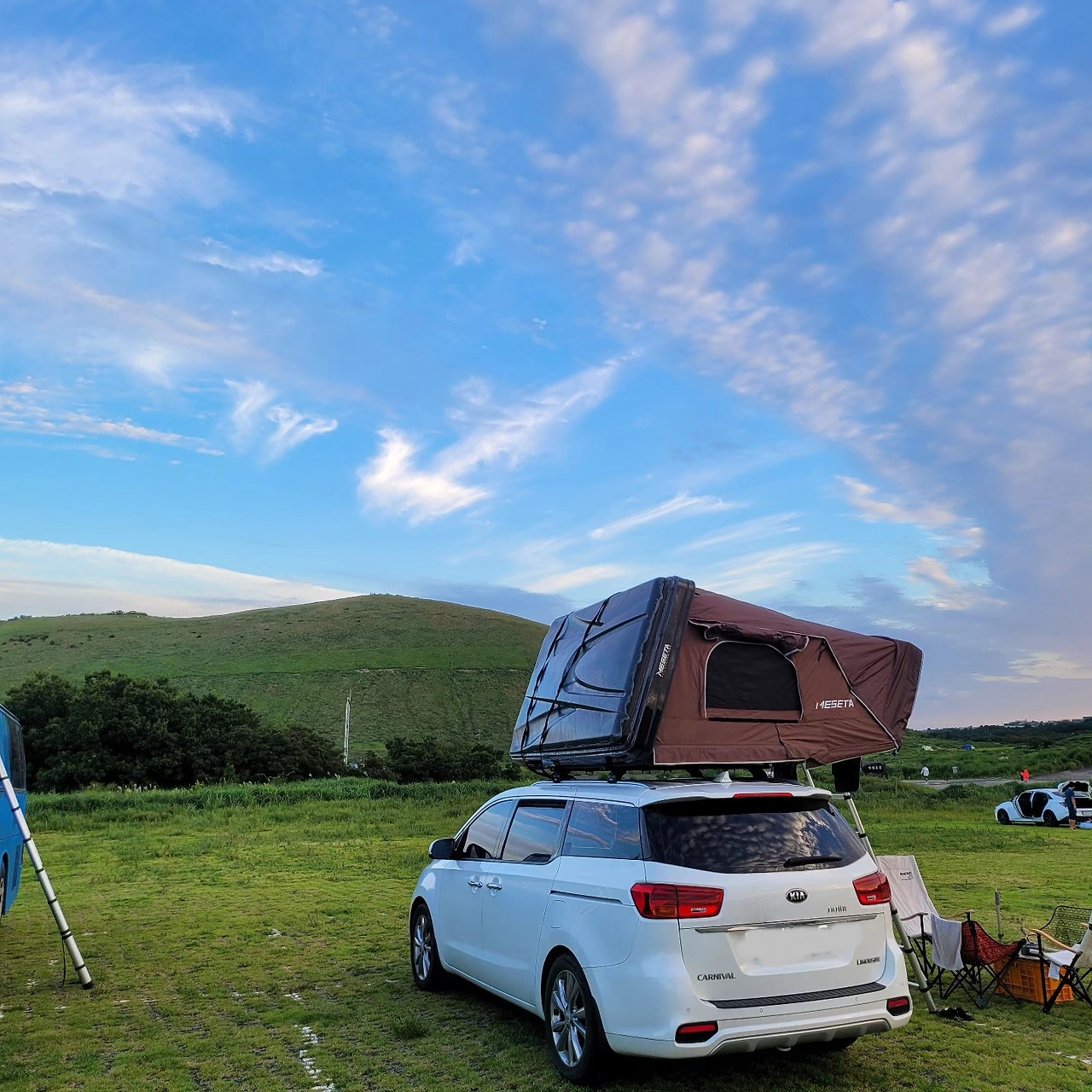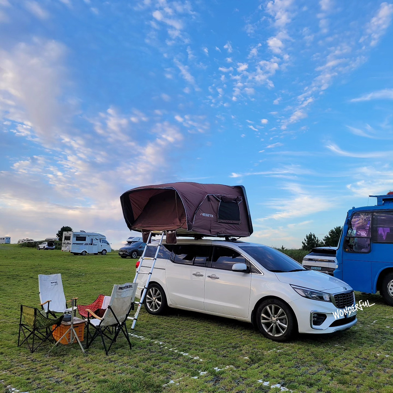 사람의 마음이 참으로 간사한 것이, 막상 새별 오름에 오니 좋았다. 들리는 소리라고는 풀벌레 소리 뿐인 주변이, 금방이라도 쏟아져내릴 것만 같은 하늘의 별들이, 심장까지 상쾌하게 만들어 버리는 것만 같은 깨끗한 공기가 좋았다. 이것이 바로 캠핑의 맛, 특히 노지캠핑의 매력인 것을 잠시 잊었었다. 지붕 위에 올려져 있는 루프탑 텐트를 오랜만에 열었다. 3분이면 모든 셋팅이 끝나는 루프탑 텐트의 매력을 다시 한번 느끼는 순간이었다.
