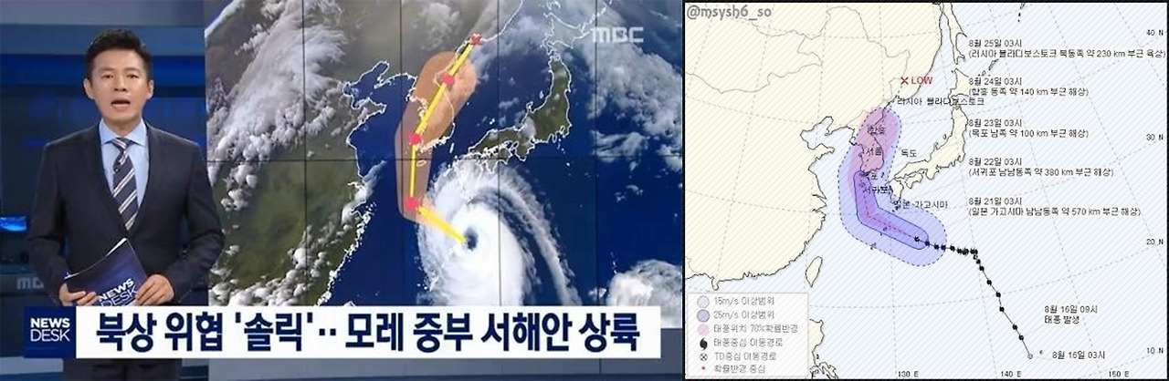 태풍 '솔릭'- 제주도를 정확하게 관통했다.