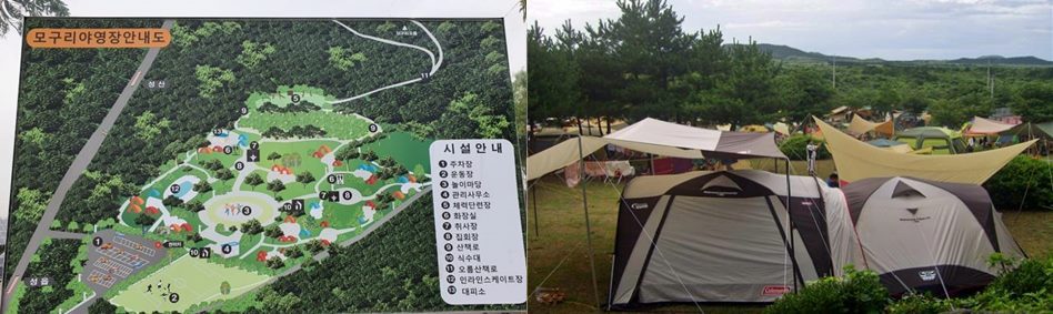 시작은 좋았다. 우리가 처음 찾은 캠핑장은 성산읍에 있는 '모구리 야영장'이었다. 이곳은 저렴한 가격에 비하여 넓고 깨끗한 시설로 유명한 곳인데, 운영도 제주도청에서 한다. 전기와 온수를 마음껏 쓰고 가족 4명이 자는데 든 비용이 하루 8,000원! 뭐 이거는 공짜와 같았다. 언덕을 야영장으로 꾸민 곳이라 주차장에서 리어카를 끌고 가는 것은 불편했지만 그정도는 괜찮았다. 어차피 노동하러 다니는 것이 캠핑 아닌가?