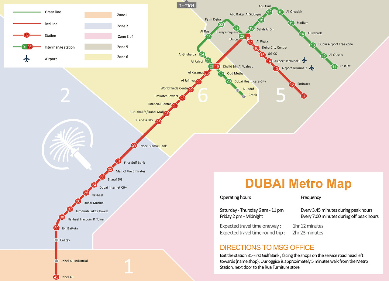 두바이 지하철은 크게 Green line과 Red line으로 나누어지는데,