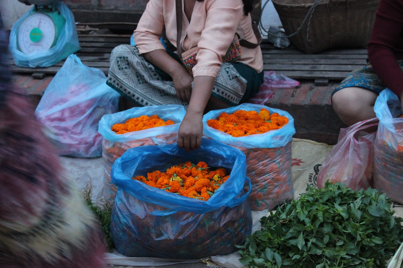 5시가 좀 넘은 시간, 너무 이른 시간이라 그런지 아직 사람들의 활동이 활발하지가 않다. 걷다 보니 시장이 보인다. 시장 상인들도 이제 막 자리를 폈는지 아직 여기저기 준비준인 사람들이 많다. 직접 수확한듯한 작물들을 가지런히 예쁘게도 정리해 놓았다. 꽃송이만 따서 파는 모습은 생소했지만 푸르스름한 새벽녘에 화려한 꽃송이 다발을 보니 그 화려함이 더 크게 느껴졌다.