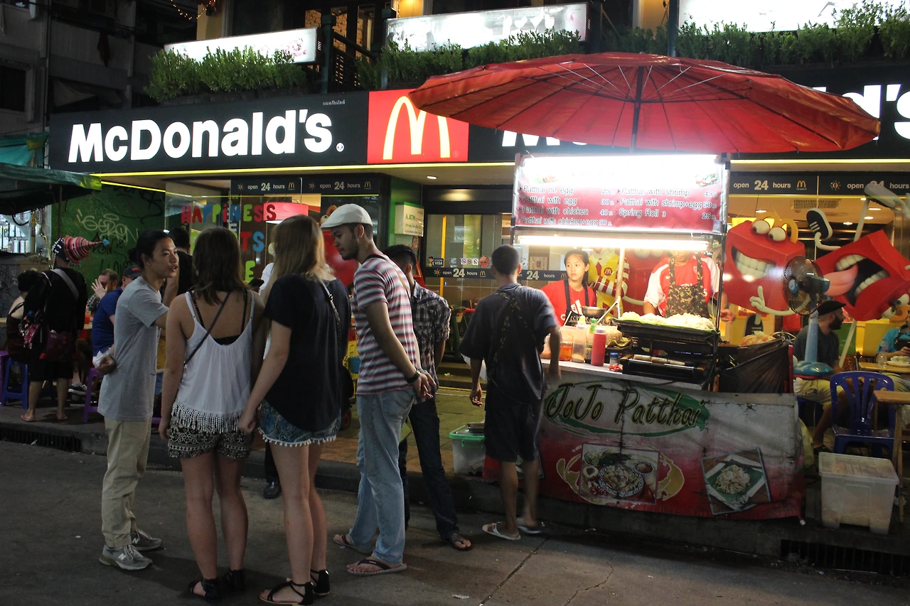 아무튼 또다시 우여곡절 끝에 카오산로드에 도착했다. 가장 먹고 싶었던 콘파이를 먹으러 맥도날드부터 고고씽!! 아~ 기다리고~ 고~ 기다리던 (어머~너무 옛날 사람 멘튼가) 콘파이!! 넘나 맛난 것!!♥ 하나 더 먹고 몇 개 더 사 올걸 하는 후회가 드는군. 혼자 여행 가면 참 안 좋은 것이 많이 먹지를 못한다. 역시 먹을 땐 누군가 함께여야 양도 맛도 배가 되는 것 같다. 약 1주일 전 겨우 하룻밤 지내고 간 곳이지만 그래도 금세 다시 돌아오니 익숙한 동네 같고 마실 나온 느낌이 들었다. 콘파이 먹고 어슬렁어슬렁 지인들에게 줄 기념품이나 살까 해 한 바퀴 돌아본다. 그리하여 코끼리 파우치 몇 개와 말도 안 되는 프린팅 민소매 티셔츠를 2장 샀다. 하지만 나에게는 넘나 귀엽고 편한 것~ 한국 와서도 가끔 입고 있다. 헤나도 하고 싶었지만 시간 관계상 대기자가 너무 많아 그건 패스. 그렇다면 나에게 남은 옵션이란 시원한 맥주가 되겠지.
