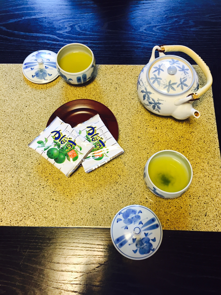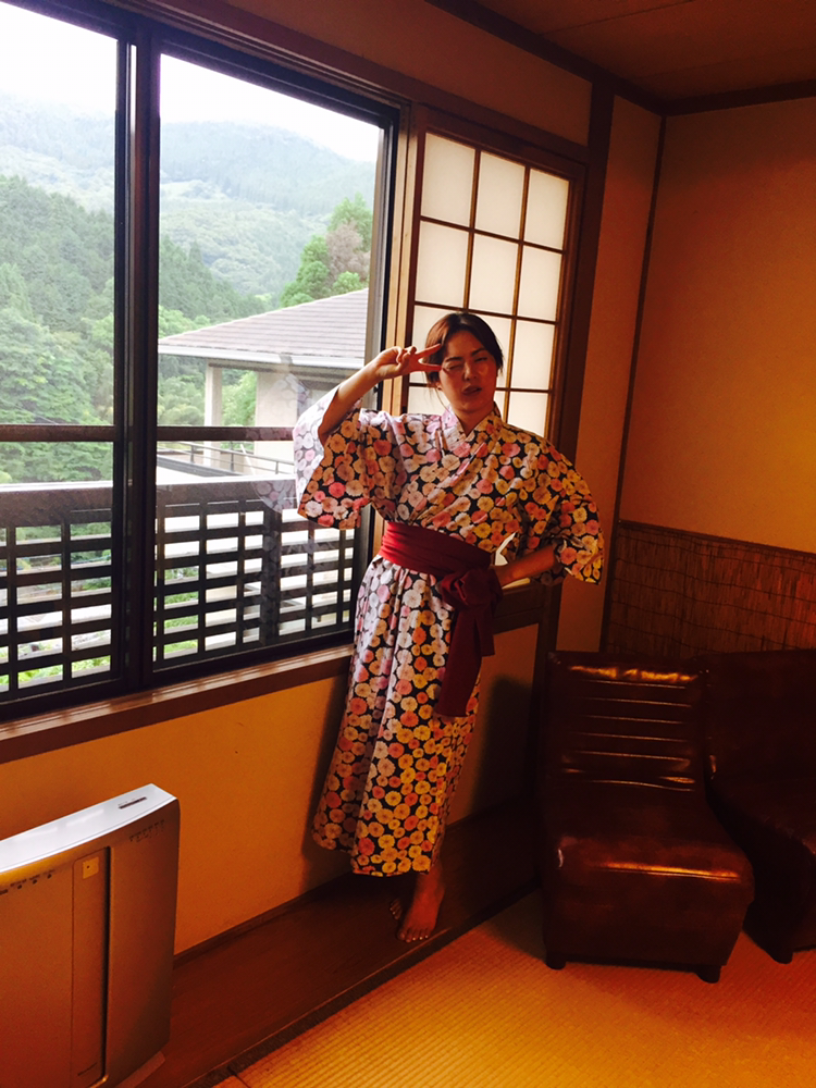 숙소에 도착하니 주인 아주머니께서 택시비를 지불해주셨다. 마음속 안도. 게다가 고우신 주인 아주머니가 영어도 잘 하신다. 한번 더 안도. 그렇다고 내가 영어를 잘 하는건 아니나 일어보다는 나으니까.유카타를 하나씩 골라들고 방으로 안내받았다. 창문밖 풍경이 푸르르니 좋았고 나를 반겨주는 상위에 차려진 녹차와 매실과자도 좋았다. 저 과자가 생각보다 맛있었지. 주변에 매점이 없을 걸 예상하고 바리바리 사들고 온 술과 주전부리. 딱 깔아놓고 사진 찍으니 너무나 뿌듯!! 7시에 저녁식사라니 그럼 그전에 온천을 한바탕 즐겨줘야지 않겠는가!! 야마시로야는 노천탕 2개, 개인탕1개, 대중탕1개 정도 있었던거 같은데 노천탕과 개인탕은 먼저 들어간 사람이 문 잠그면 끝!! 그래서 사람 없는 시간에 이용하려고 짬짬이 빠르게 움직였다.