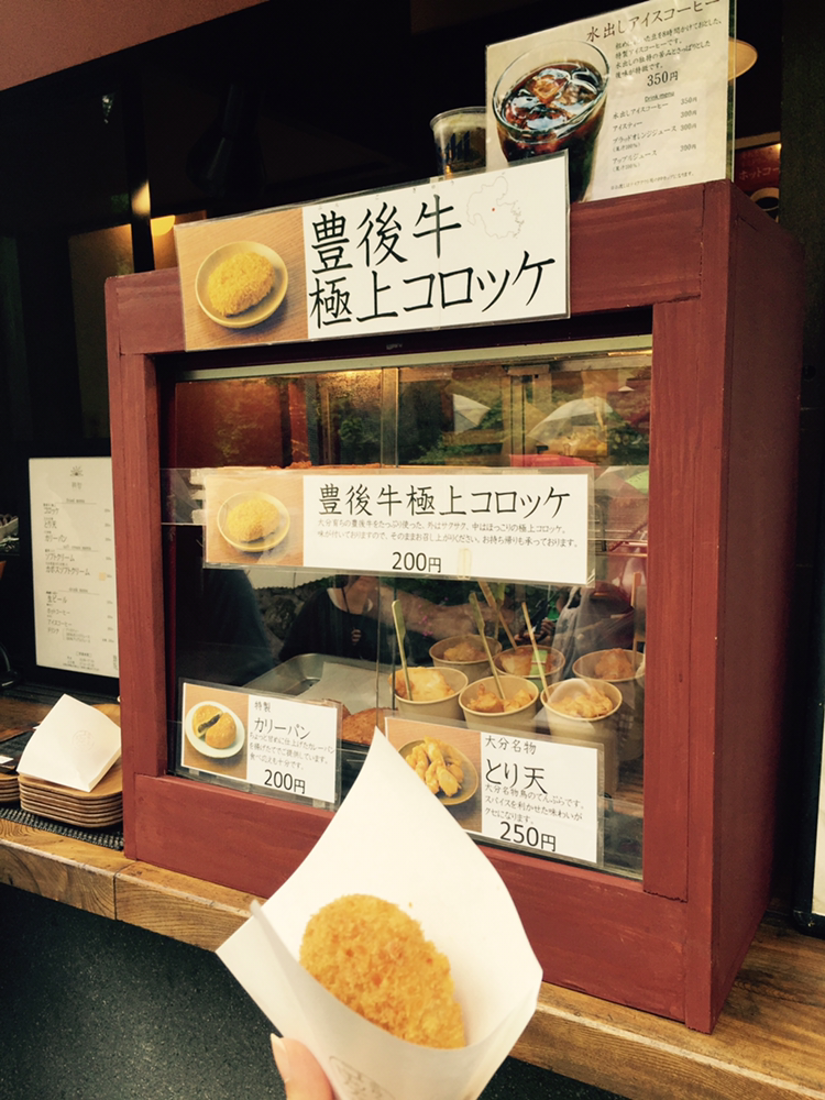 다시 유후인. 비가 오니 사람도 적고 운치도 있고 비오는 날의 낭만이 느껴지는구나. 바람이 불고 폭우가 내리지만 않는다면 적당한 비내리는 거리는 참 걷기 좋은 것 같다. 가게들도 많고 간판이며 디스플레이만 보고 걸어도 심심하지 않은 곳이다. 어제 못 먹은 뜨끈한 고로케. 한개만 사서 엄마랑 나눠먹기. 완전 부들부들 역시 감자는 맛있구나.