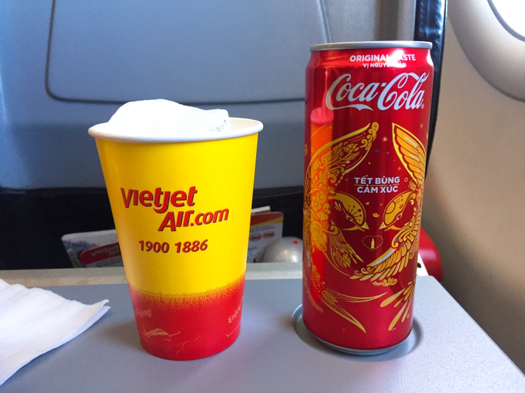 딱 식사만 주는 저가항공 기내식. 먹고 나니 뭔가 더 땡기면서 입이 심심하다. 아쉬운대로 사치스럽게 2$짜리 콜라와 마차라떼 하나씩을 주문했다. 어머!! 콜라 디자인이 너무나 화려한 것. 이쁘네. 이게 뭐라고 사진 찰칵찰칵. 새해라고 스페셜 에디션 패키지로 나온것 같았다. 맛은 그냥 콜라.