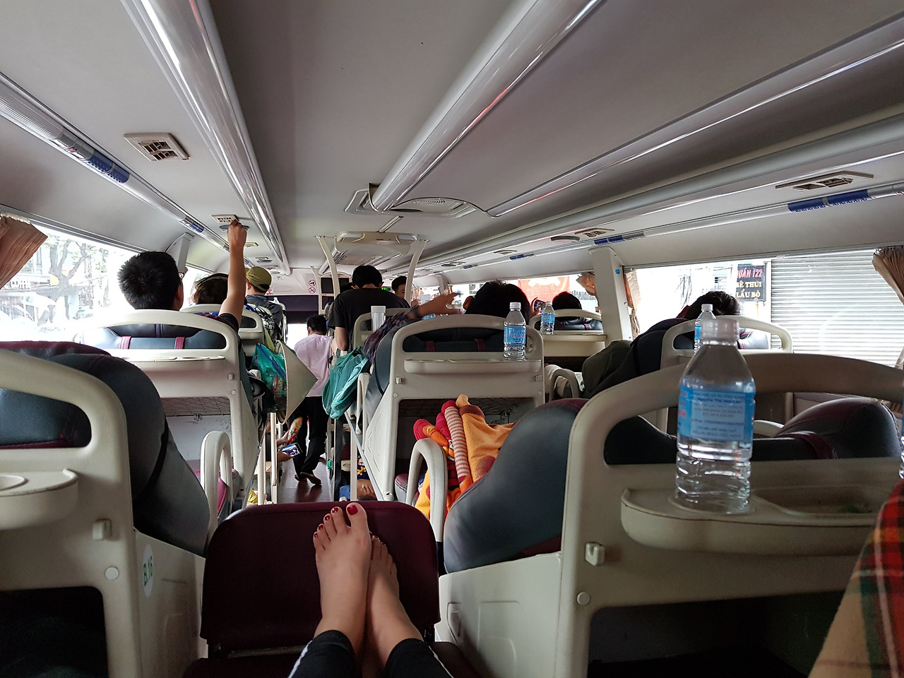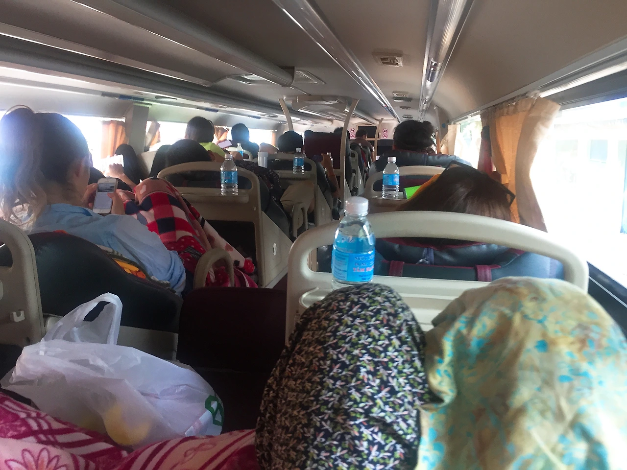 체크아웃 후 버스를 타러 갔다. 여행사에 가니 직원이 골목길을 걸어 버스 터미널로 안내해주었다. 자리가 만석인지 우리보고 맨 뒷자리에 쪼르륵 앉으라네. 우리야 가족이니 다닥다닥 붙어서 갔지만 모르는 사람들끼리 맨뒷자리에 앉게 된다면 매우 불편할 것 같다. 그리고 결정적으로 에어콘 바람이 잘 오지 않아서 조금 더웠다. 후기에 사람들이 춥다고 해서 걱정했는데 더워서 당황했다. 돌아오는 버스에선 2층 앞쪽에 앉았는데 개인석은 확실히 좀 추웠다.