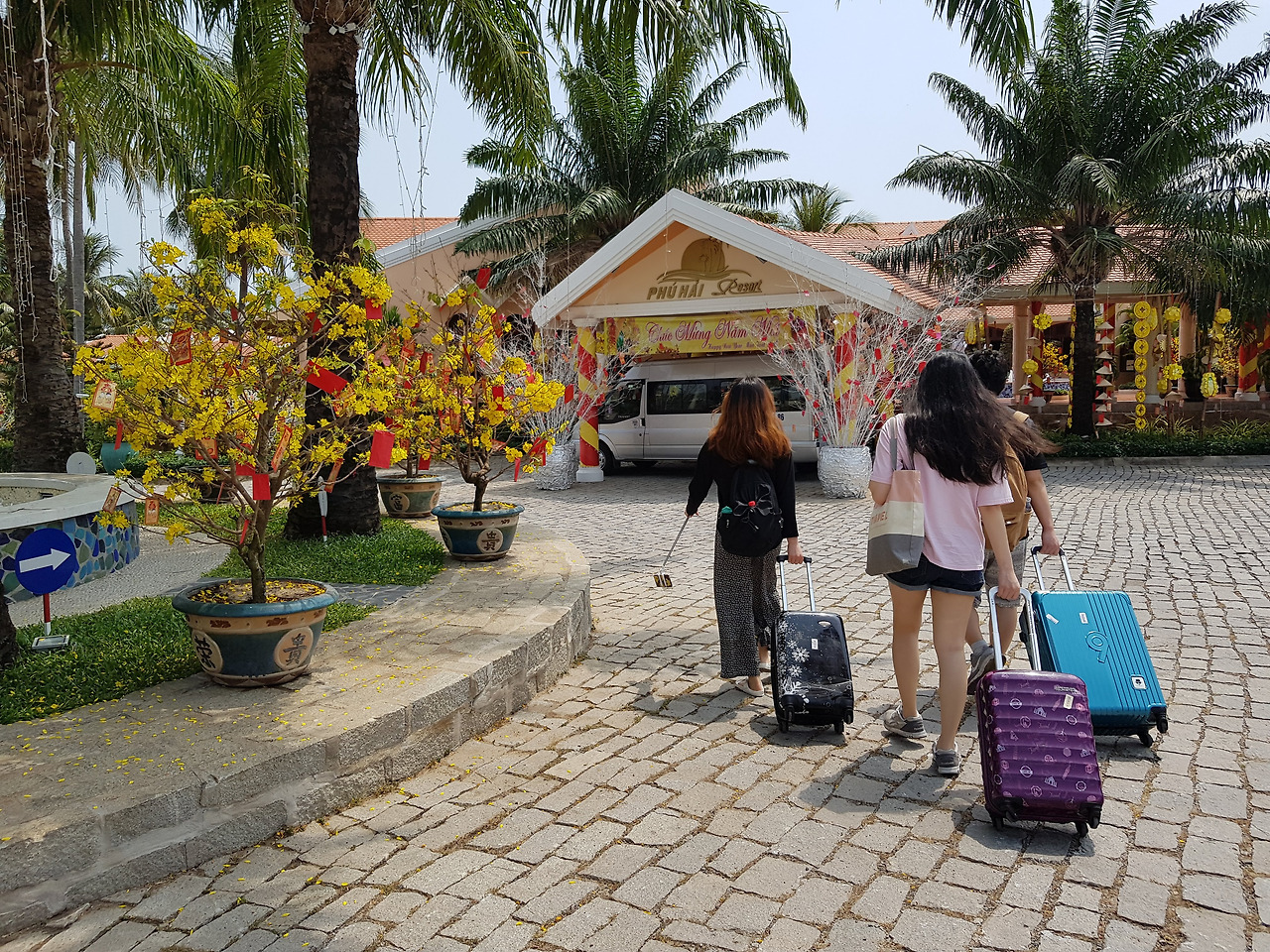 리조트에 도착!! 뭔가 중국스럽다. 신년이라 그런지 장식이 매우 화려하다. 로비까지 또 기쁘게 파워워킹!! 왜냐면 이제 해가 너무 뜨겁기 때문에, 그리고 우리에겐 시간이 없기에.