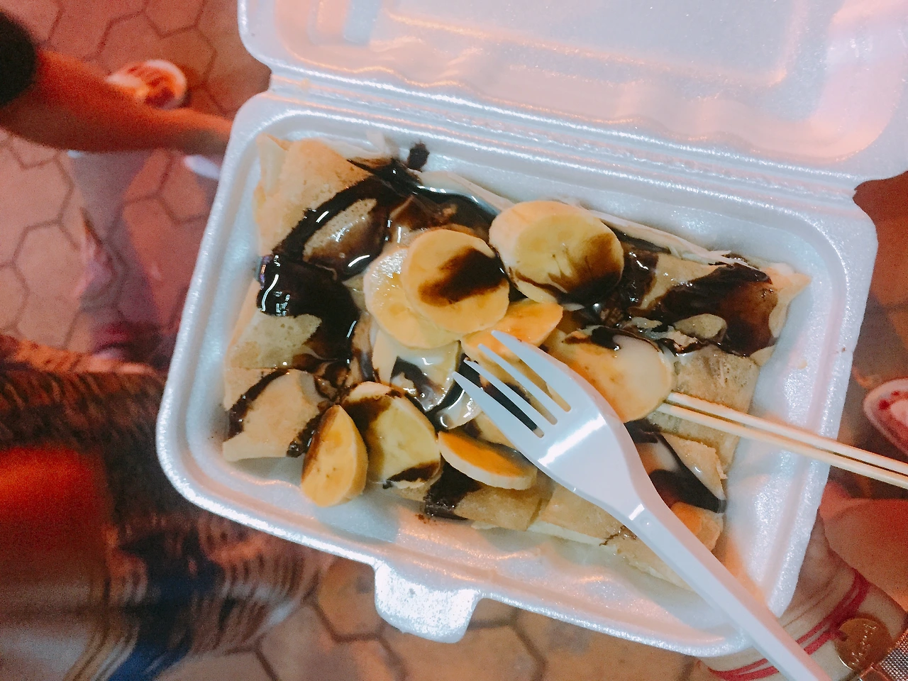 후식 먹어야지. 바나나 크레페 하나 주세요.