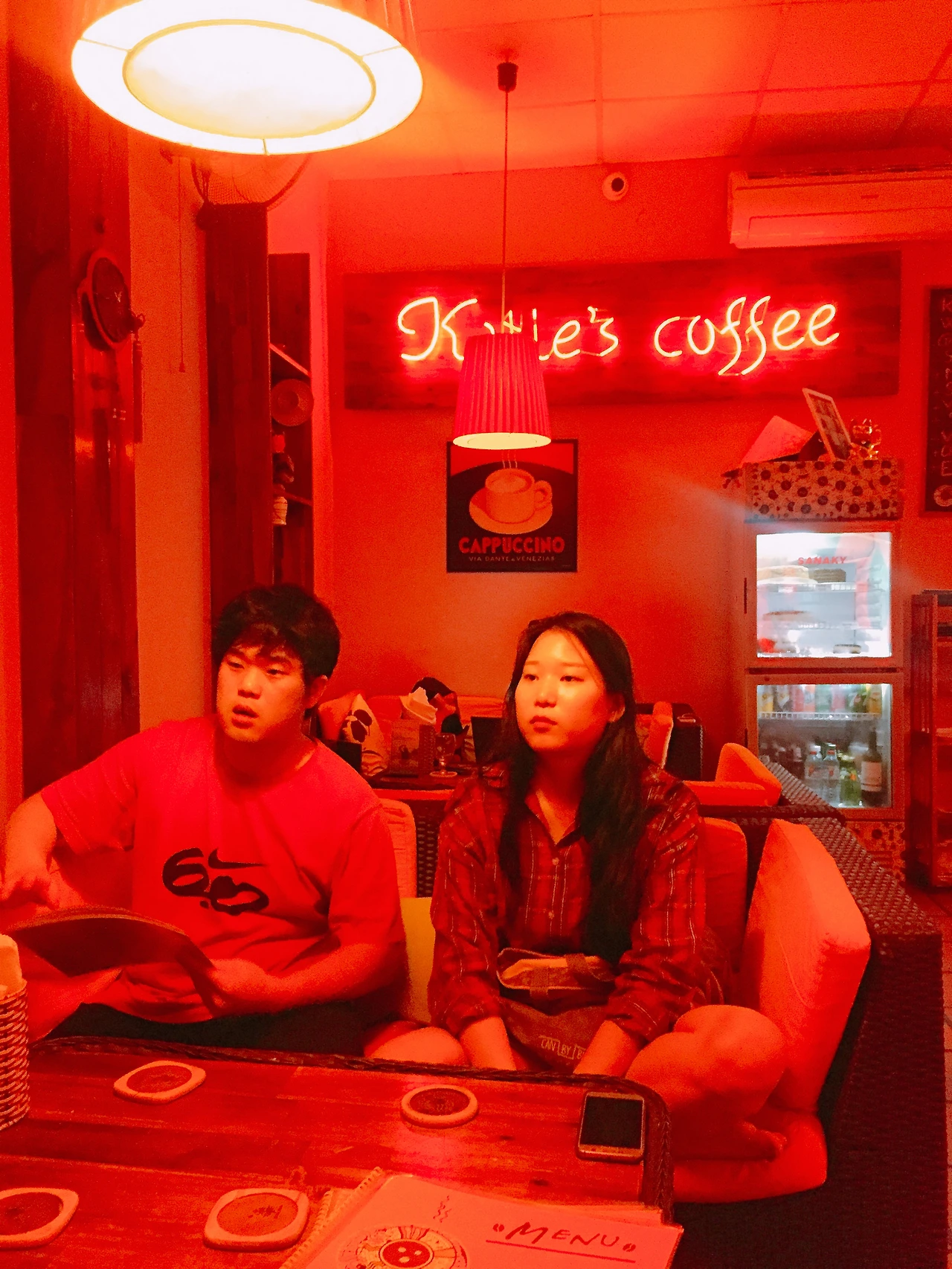 그리고 이 붉은 조명의 카페에 들어섰지.