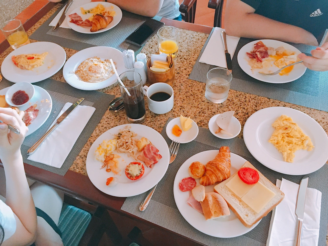 새벽 늦게서야 잠이 든 우리는 일찍 일어나서 조식을 먹으러 가기로 했었지만 눈떠보니 아무도 깨어있질 않더라. 일찍 일어난 자의 여유로 숙소 앞 해변을 잠시 거닐고 왔다. 참 좋다. 그리고는 애들을 깨우기 시작했다. 빨리 가야한다고. 늦게 가면 음식 없다고.