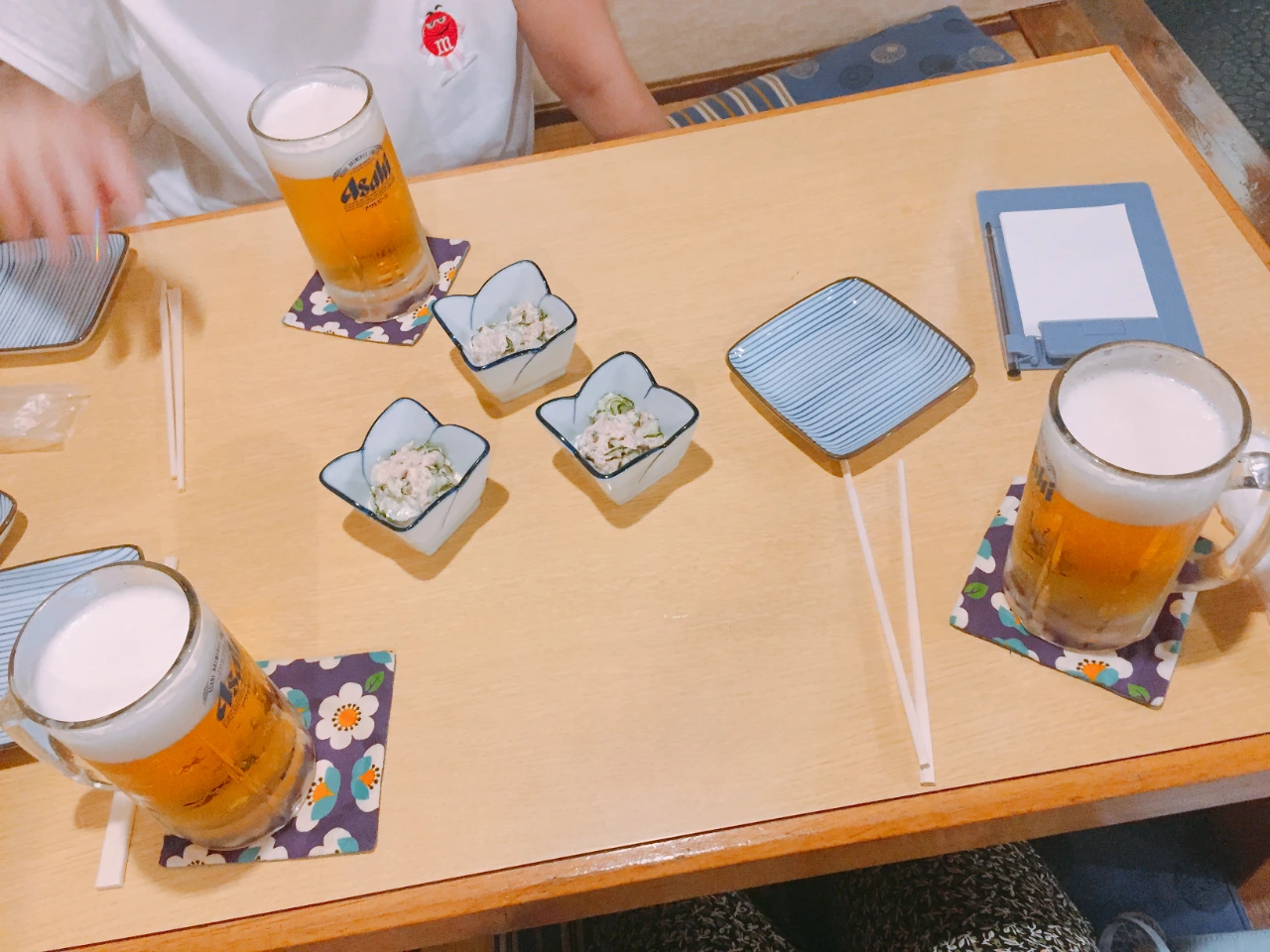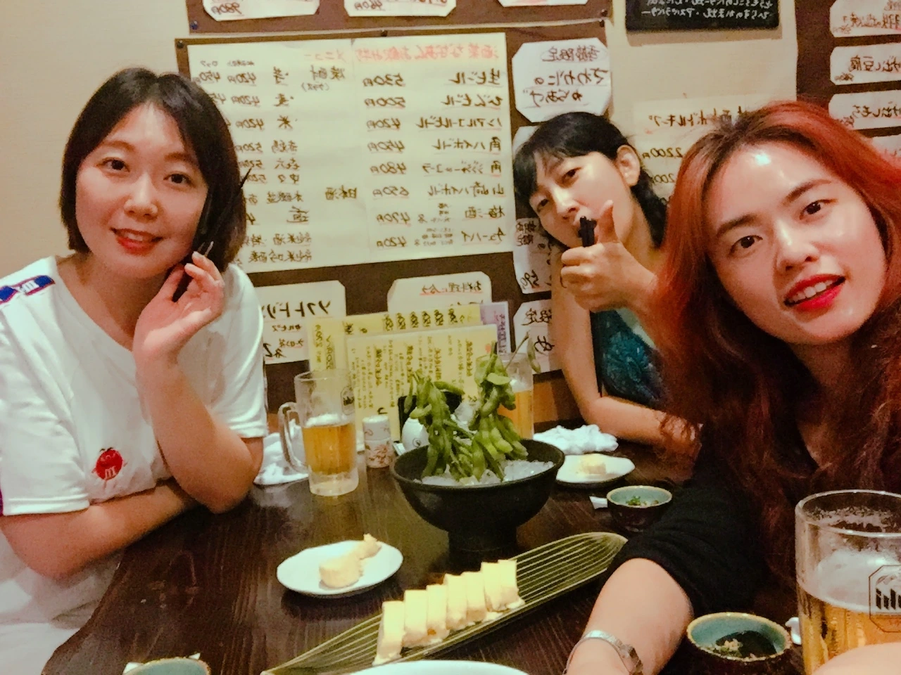 일본의 생맥주는 우리나라에 비해 비싼 편이라 가게에선 적당히 마시려고 했는데 기분 좋게 취하다 보니 늘어나는 술잔과 안주는 어쩔 수가 없었다. 안주를 다 읽을 수 없으니 친구가 띄엄띄엄 단어로 얘기해서 대충 주문했는데 보드라운 계란말이는 맛있었고 소바는 면치는 재미로 먹고 닭날개는 실패. 어설픈 일어로 주문해서 뜻하지 않은 메뉴가 나왔다. 마지막 계란에 낫또를 올린 피자같은 비쥬얼의 안주는 꽤나 맛있었으나 우리의 배가 한계점을 찍기 직전이라 제대로 즐길 수 없었다.