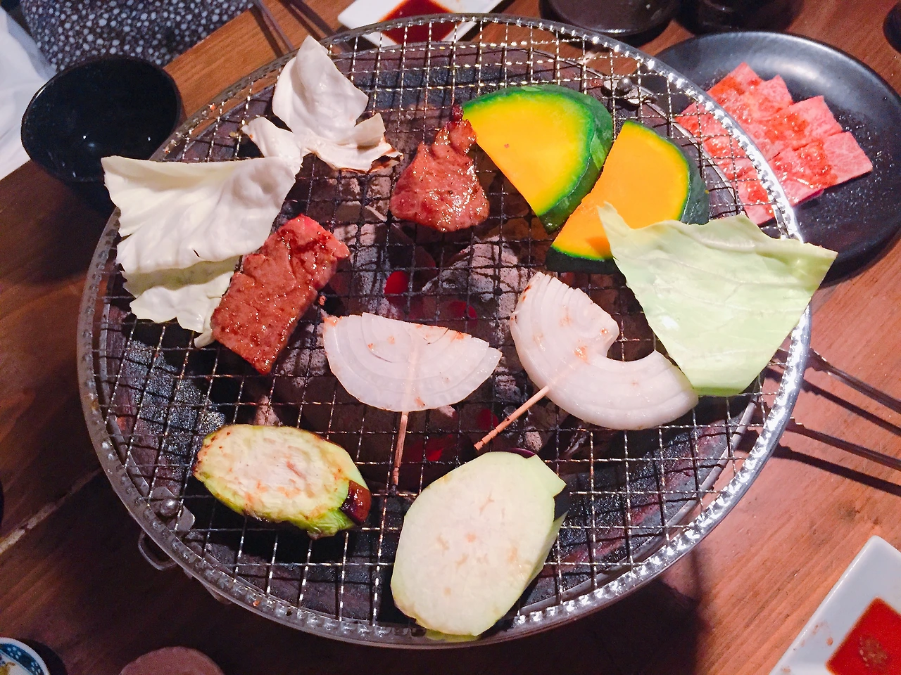 우리가 원했던 건 이런 생고기였는데 읽을 줄을 모르니 조금 저렴한 양념된 고기만 시켰던 것이다. 하지만 이미 배부르게 먹고 난 뒤라 진짜 고기는 맛만 볼 수 밖에 없었다.