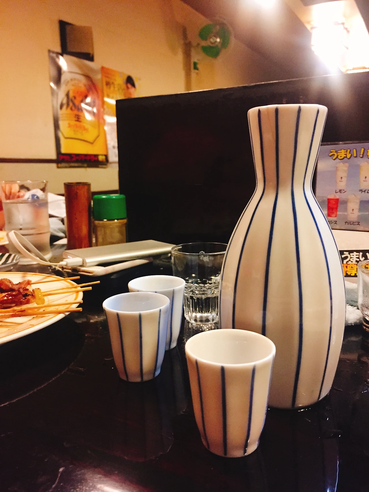 어머~ 이건 찍어야 해!! 어디 가서 이런 광경을 보며 이런 아날로그식의 데운 사케를 먹을 수 있단 말인가.