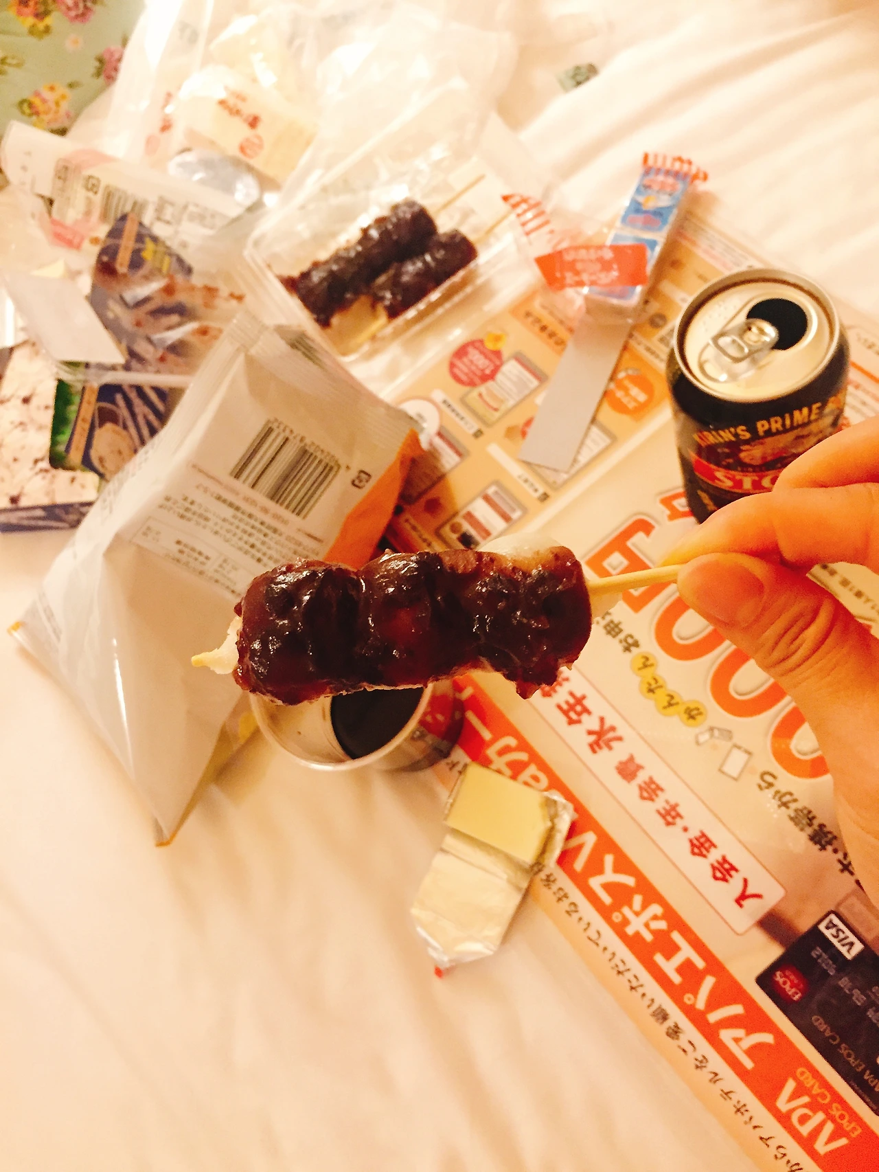 와인을 사서 먹었다. 고구마 소주는... 우리 입맛에 안 맞는걸로 결론. 마트에 팔던 당고와 치즈, 과자 등 주전부리와 함께 새벽까지 우리의 여행은 끝나지 않았다. 휴족시간 한팩으로 나눠서 써보겠다고 작은 바느질 가위로 잘라가며 그거 하나 같이 공유해 쓰겠다고 애쓰는 우리들. 사실 취한건지 정말 콩 한쪽도 나눠 먹겠다는 의지인건지 그냥 객기인지는 모르겠으나 지켜보는 입장에서 내 친구들이 참 사랑스럽고 귀여웠다.