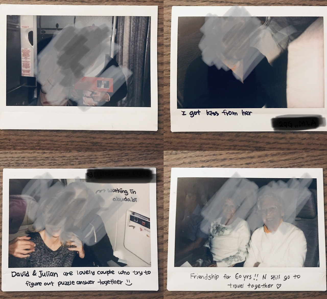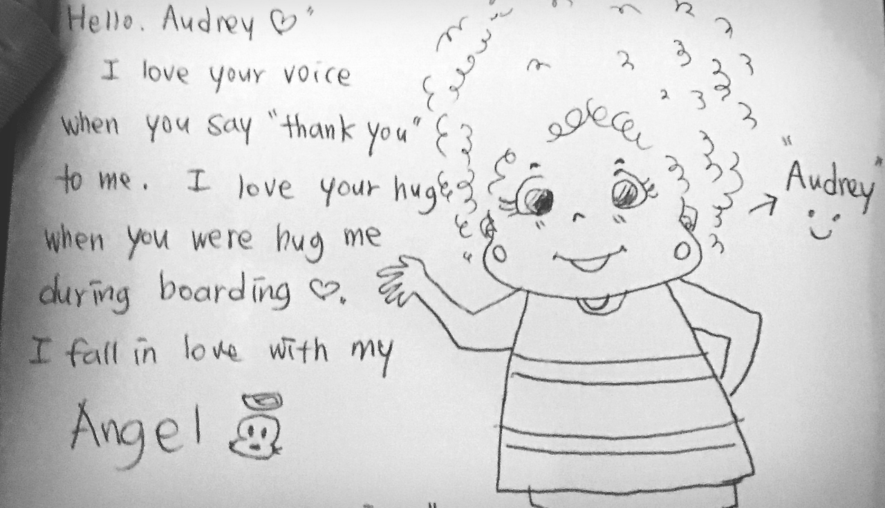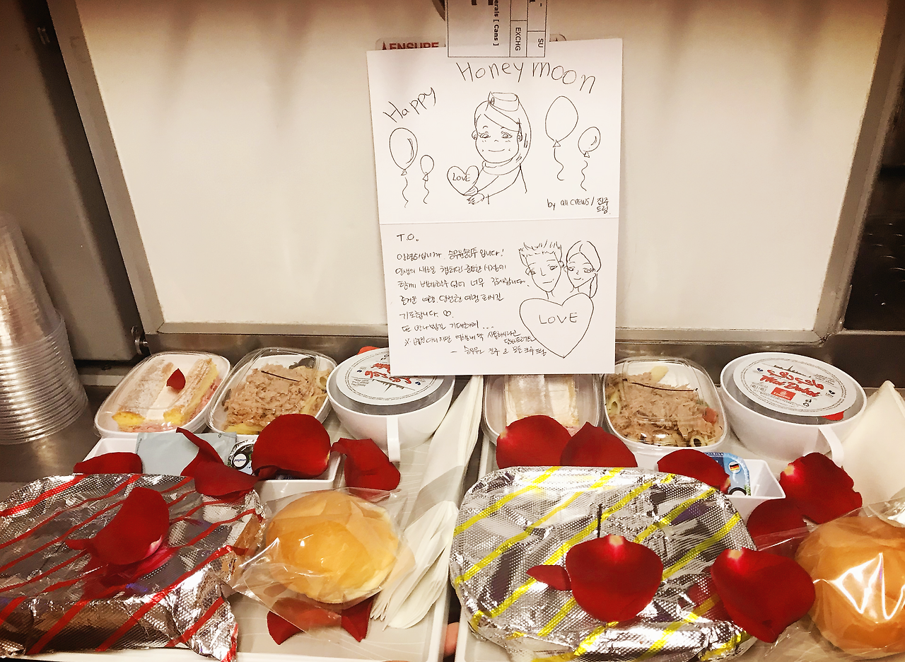 4. 비행 내내 서로를 극진히 보살피던 할머님들. 너무 보기 좋아 자매인지 물었더니, 60주년 기념 우정 여행을 가는 중이라는 것!! 사실, 승객들과의 대화 속에서 어느 누구도 알지 못할만한 사실을 승객들이 비밀이야기하듯 알려줄 때 뭔가 그들과 연결되어진듯해 행복하다. 일회성 만남이 아닐 것 같은 기분이랄까?? 그들의 여행 기억 한 페이지 어딘가 구석쯤엔 내 이야기도 있을 것만 같아 기분 좋아지는 순간이다. 어쨋든, 오늘의 여행 두고두고 기억하시라고 사진도 찰칵! 마음을 담은 편지도 한장씩!!